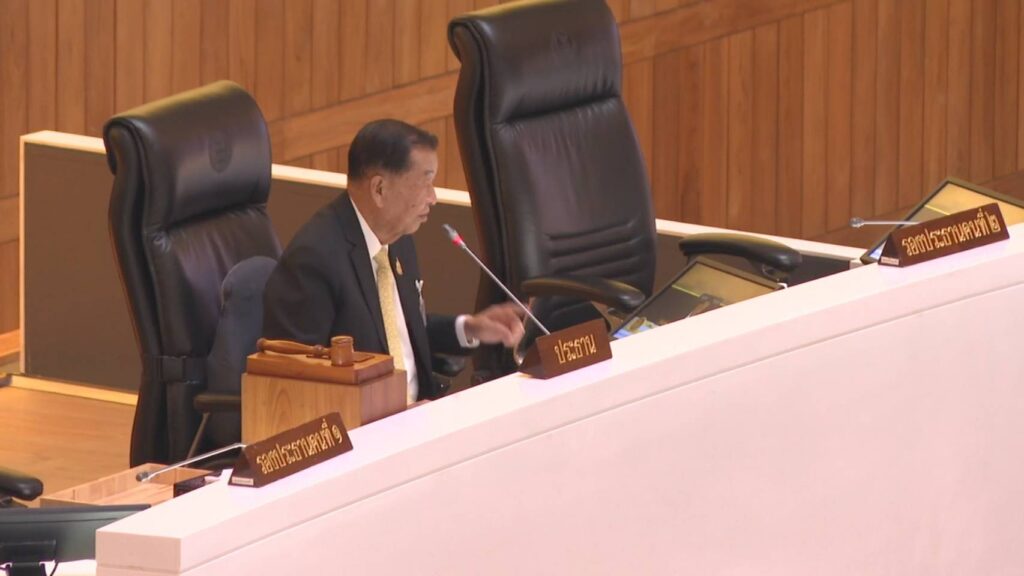 ทำให้นายธีระชัย ลุกขึ้นโต้ว่า “ถ้าจะต่อล้อต่อเถียง เขาประสบความสำเร็จอะไรบ้าง ผมอยากรู้ นอกจากใช้ปากเป็นอาวุธ ระวังปากด้วยครับ เดี๋ยวนี้ผมแก่แล้ว ไม่กลัวด้วยไอ้พวกปาก…” ซึ่งนายธีระชัยยังไม่ทันพูดจบ นายพิเชษฐ์ปิดไมค์ จนทำให้ทั้ง 2 ฝ่ายโต้กันอย่างดุเดือดนอกไมค์