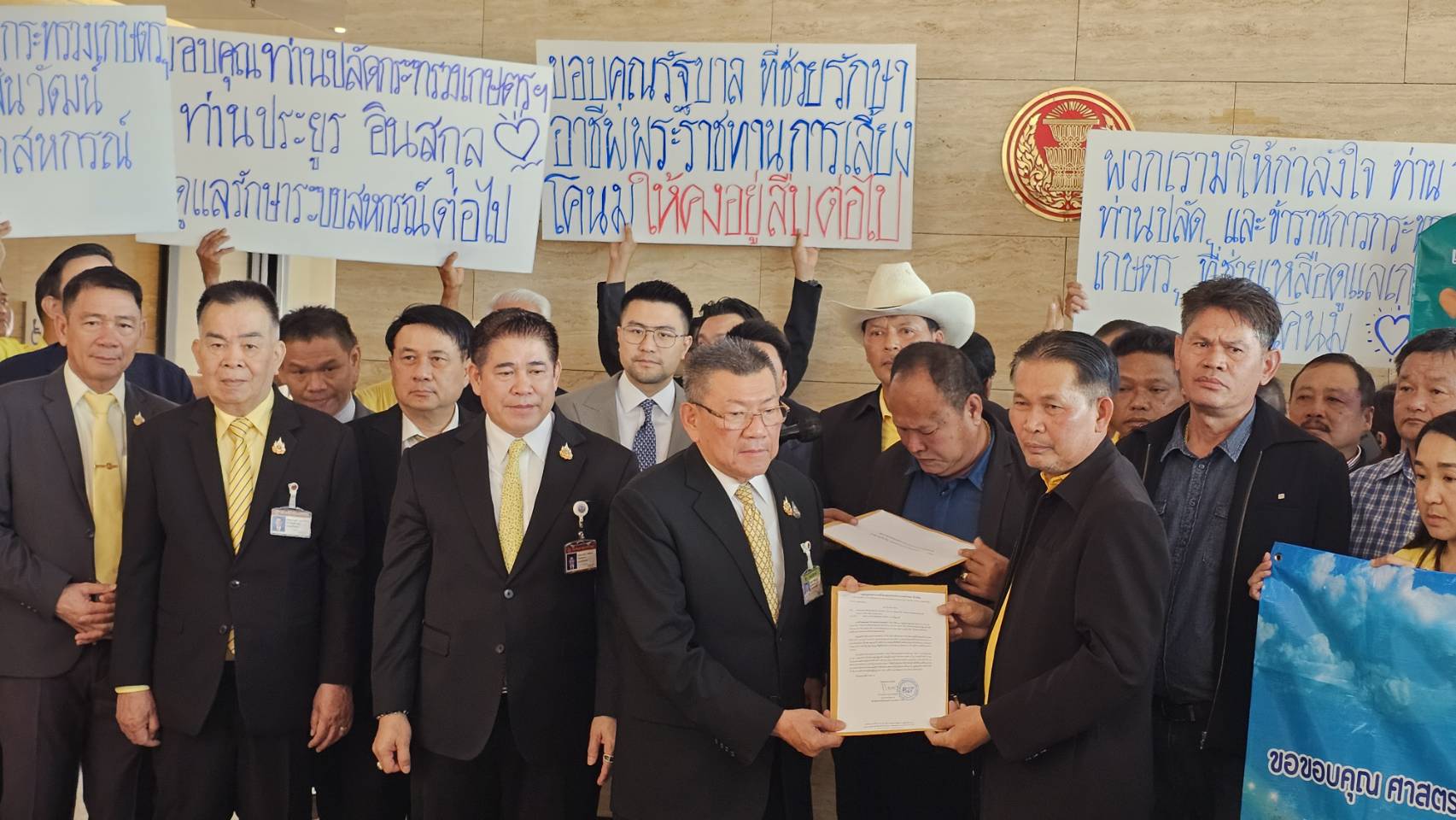 โดยตัวแทนกลุ่มเกษตรกรกล่าวว่า วันนี้มาขอบคุณนายกรัฐมนตรี, ร.อ.ธรรมนัส ,รัฐมนตรีทุกคนของกระทรวงเกษตรและสหกรณ์ และ สส.ทุกคนที่ให้ความกรุณากับภาคการเกษตร ที่ได้แก้มติคณะรัฐมนตรี(ครม.)เพื่อให้เกิดความเท่าเทียมต่อเกษตกร สหกรณ์ และ สถาบันการศึกษา พวกเราคือเกษตรกรตัวจริง เป็นคนเลี้ยงวัวตัวจริงและรอคอยวันนี้มานานที่จะลืมตาอ้าปากได้