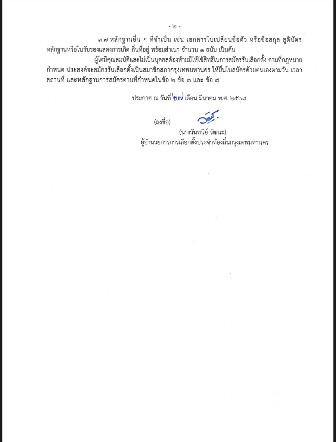สำหรับผู้ใดมีคุณสมบัติและไม่เป็นบุคคลต้องห้ามมิให้ใช้สิทธิในการสมัครรับเลือกตั้ง ตามที่กฎหมายกำหนด ประสงค์จะสมัครรับเลือกตั้งเป็นสมาชิกสภากรุงเทพมหานคร ให้ยื่นใบสมัครด้วยตนเอง ตามวัน เวลา สถานที่ และหลักฐานการสมัครตามที่กำหนดไว้.-314-สำนักข่าวไทย