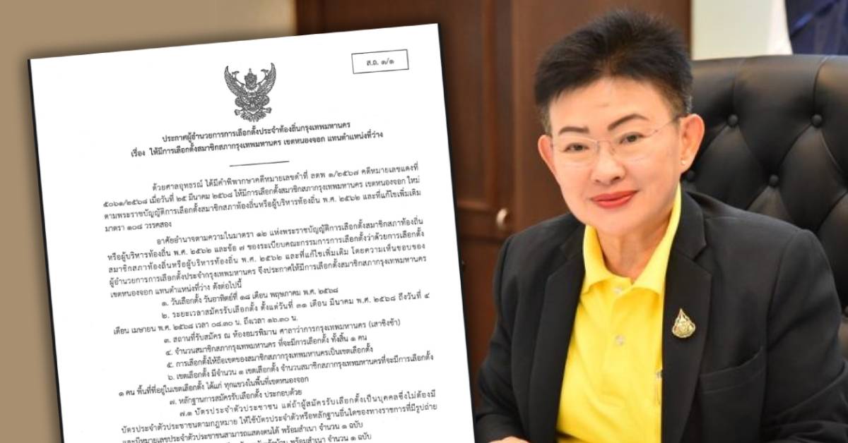 กรุงเทพฯ 27 มี.ค. – ผอ.เลือกตั้งท้องถิ่น กทม. ประกาศวันเลือกตั้ง สก. เขตหนองจอก แทนตำแหน่งที่ว่าง 18 พ.ค.นี้ เปิดรับสมัคร 31 มี.ค.-4 เม.ย.68 ที่ศาลาว่าการ กทม. เสาชิงช้า