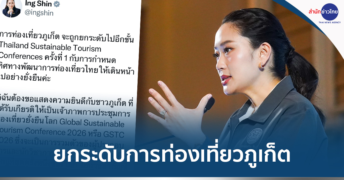 ภูเก็ต 28 มี.ค.- นายกฯ ยินดีชาวภูเก็ต เตรียมเป็นเจ้าภาพการประชุมการท่องเที่ยวยั่งยืนโลก Global Sustainable Tourism Conference 2026 เชื่อ เป็นโอกาสที่ไทยแสดงศักยภาพเป็นผู้นำด้านการท่องเที่ยวยั่งยืนระดับโลก