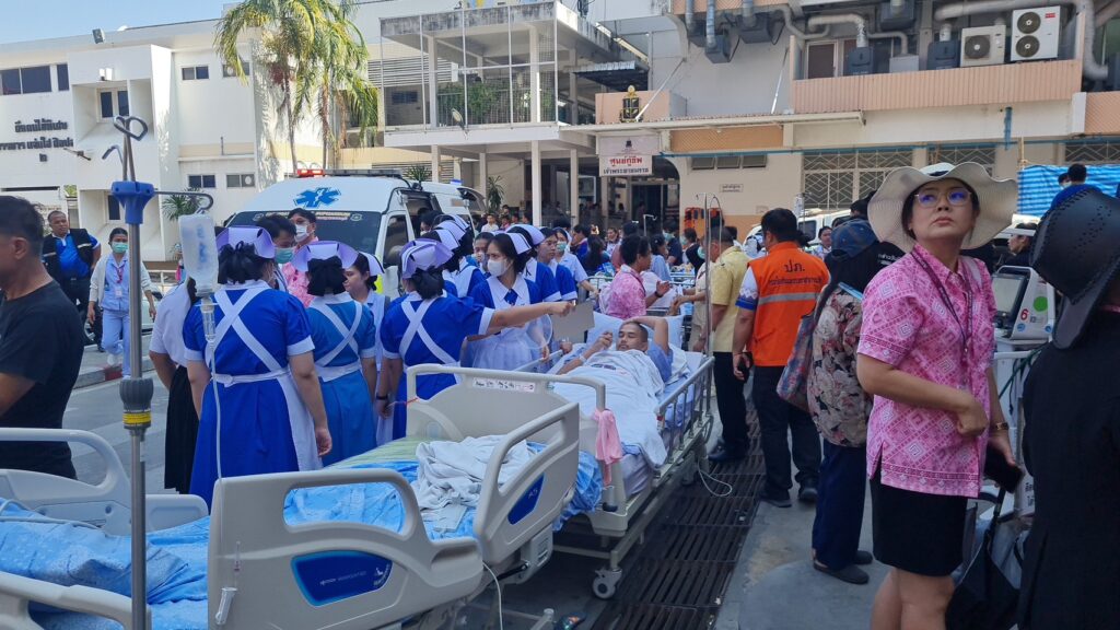 นายภาสกร บุญญลักษม์ อธิบดีกรมป้องกันและบรรเทาสาธารณภัย ในฐานะเลขานุการกองบัญชาการป้องกันและบรรเทาสาธารณภัยแห่งชาติ สรุปสถานการณ์แผ่นดินไหวและความคืบหน้าในการให้ความช่วยเหลือประชาชนที่ได้รับผลกระทบจากเหตุการณ์แผ่นดินไหว ว่า จากกรณีเหตุแผ่นดินไหวศูนย์กลางที่ประเทศเมียนมา ขนาด 8.2 ลึก 10 กิโลเมตร ในช่วงบ่ายของเมื่อวานนี้ ทำให้ประชาชนในหลายพื้นที่ทั่วประเทศไทยได้รับผลกระทบเป็นวงกว้าง สามารถรับรู้แรงสั่นไหวได้ในพื้นที่ รวม 57 จังหวัด ได้แก่ จังหวัดเชียงใหม่ เชียงราย ลำพูน น่าน แม่ฮ่องสอน ลำปาง พะเยา แพร่ ตาก กำแพงเพชร นครสวรรค์ พิจิตร พิษณุโลก เพชรบูรณ์ สุโขทัย อุตรดิตถ์ อุทัยธานี กาฬสินธุ์ ขอนแก่น ชัยภูมิ นครพนม นครราชสีมา บุรีรัมย์ มหาสารคาม ยโสธร เลย สกลนคร อุดรธานี ชัยนาท นครนายก นครปฐม นนทบุรี ปทุมธานี พระนครศรีอยุธยา ลพบุรี สมุทรปราการ สมุทรสงคราม สมุทรสาคร สิงห์บุรี สุพรรณบุรี สระบุรี อ่างทอง จันทบรี ฉะชิงเทรา ชลบุรี ปราจีนบุรี ระยอง สระแก้ว กาญจนบุรี ประจวบคีรีขันธ์ เพชรบุรี ราชบุรี กระบี่ ชุมพร นครศรีธรรมราช ระนอง สุราษฎร์ธานี รวมถึงกรุงเทพมหานคร โดยมีแผ่นดินไหวตาม (Aftershock) ขนาด 2.8 – 7.1 รวม 56 ครั้ง เบื้องต้นได้รับรายงานความเสียหาย 13 จังหวัด และกรุงเทพมหานครซึ่งเป็นพื้นที่ที่มีผู้เสียชีวิต จำนวน 9 ราย ผู้บาดเจ็บ จำนวน 9 ราย และผู้สูญหาย จำนวน 101 ราย ปัจจุบันมีการประกาศเขตการให้ความช่วยเหลือผู้ประสบภัยพิบัติกรณีฉุกเฉินแล้ว 2 จังหวัด ได้แก่ จังหวัดปทุมธานี และจังหวัดแพร่ รวมทั้งกรุงเทพมหานครที่มีการประกาศเขตพื้นที่ประสบภัยพิบัติเต็มพื้นที่ ในส่วนของความเสียหายในพื้นที่จังหวัดอื่นนั้นขณะนี้ได้รับรายงานความเสียหายจาก 14 จังหวัด ดังนี้