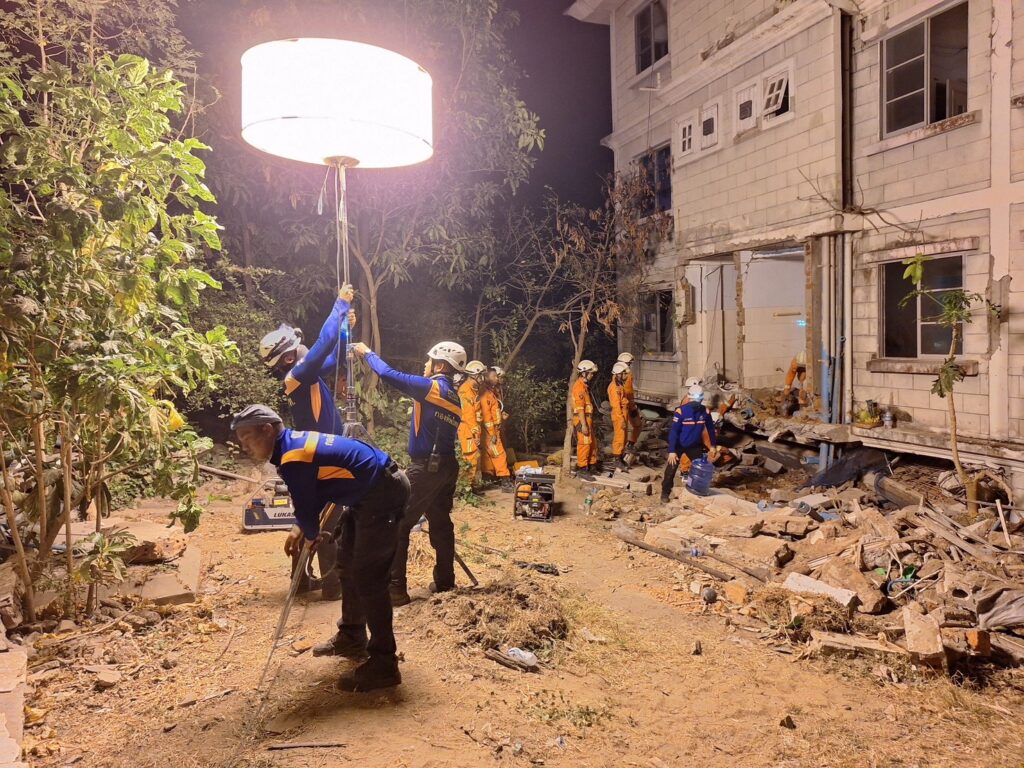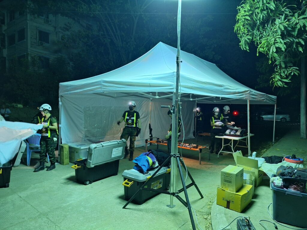 โดยทีมค้นหาและกู้ภัยจากกองทัพไทย จะยังคงปฏิบัติงาน ณ จุดเกิดเหตุจนกว่าจะช่วยเหลือผู้ประสบเหตุได้สำเร็จหรือมีคำสั่งเปลี่ยนแปลง ในขณะที่ทีม MERT (Medical Emergency Response Team) ได้จัดตั้งที่ทำการสนามในพื้นที่เพื่อรองรับผู้บาดเจ็บ และเข้าประสานโรงพยาบาลท้องถิ่น เพื่อเตรียมเคลื่อนย้ายผู้ประสบภัยเข้ารับการรักษาในขั้นต่อไป-313 .-สำนักข่าวไทย