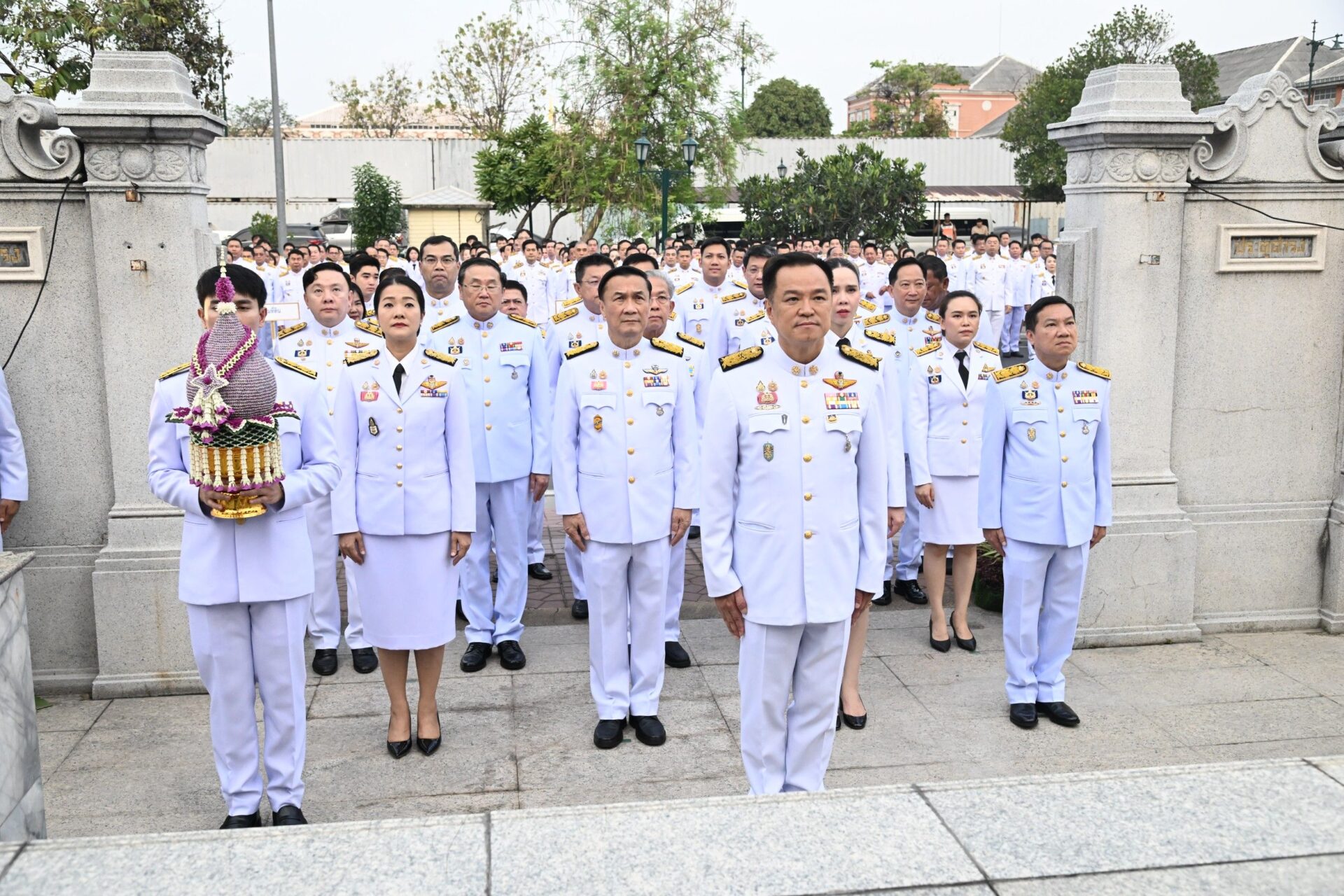 นายอนุทิน นำคณะผู้บริหารระดับสูง สักการะศาลพระชัยมงคล ศาลพระกาฬไชยศรี และสักการะพระอนุสาวรีย์สมเด็จพระเจ้าบรมวงศ์เธอ กรมพระยาดำรงราชานุภาพ โดยหลั่งน้ำจากพระสังข์ที่ป้ายพระนาม “ดำรงราชานุภาพ” เสร็จแล้วเจิม ถวายพวงมาลัย โปรยดอกไม้ และวางพุ่มดอกไม้ถวายสักการะ จุดธูป เทียนที่เครื่องทองน้อย และที่โต๊ะเครื่องสังเวย ผู้บริหารระดับสูงร่วมปักธูปบริวารทั้งหมดที่เครื่องสังเวย โหร พราหมณ์ อ่านคำบวงสรวงเพื่อถวายสักการะ จบแล้ว นายอนุทิน กล่าวคำสดุดี และตรวจเยี่ยมแถวข้าราชการและพนักงานรัฐวิสาหกิจ