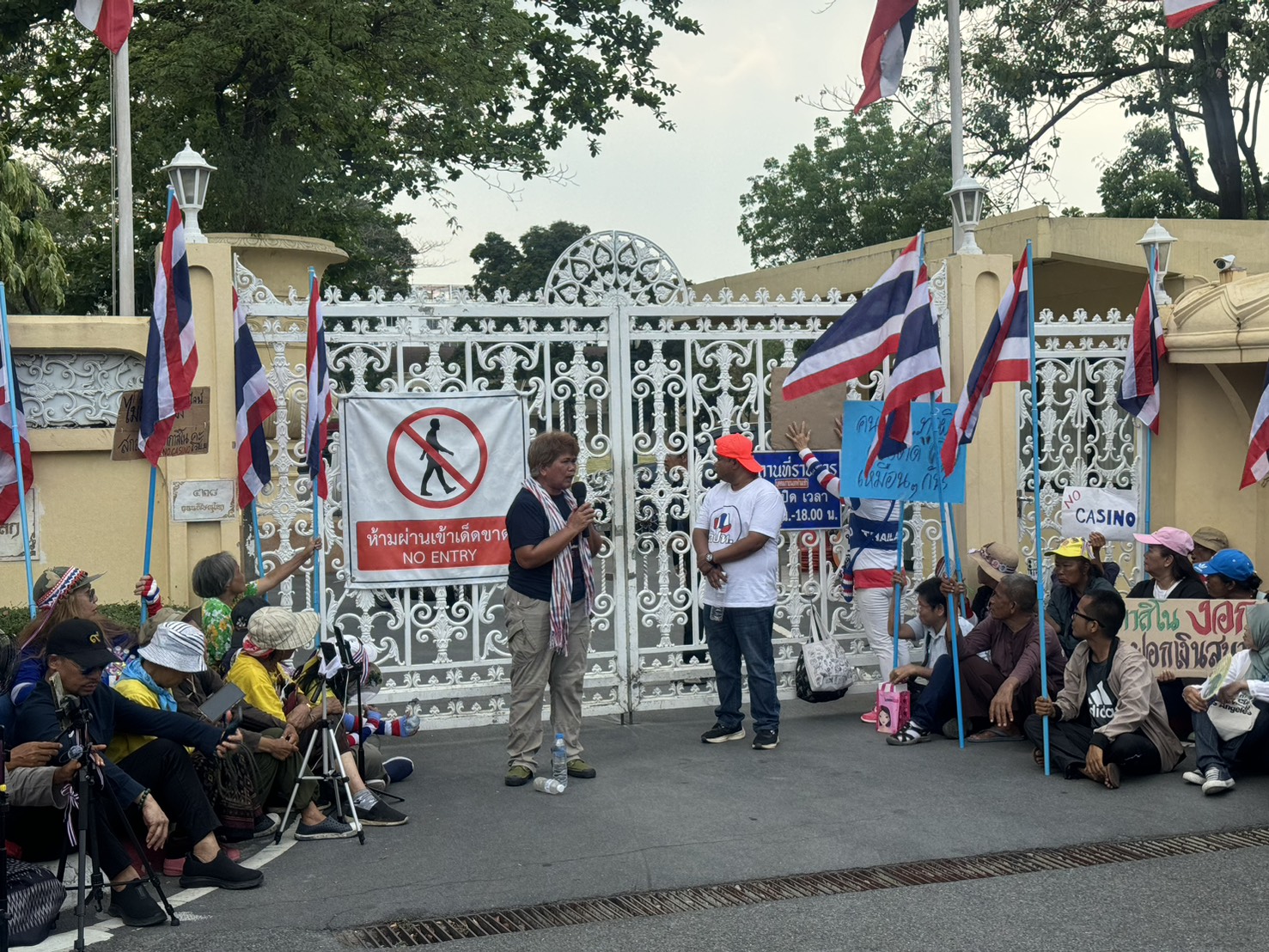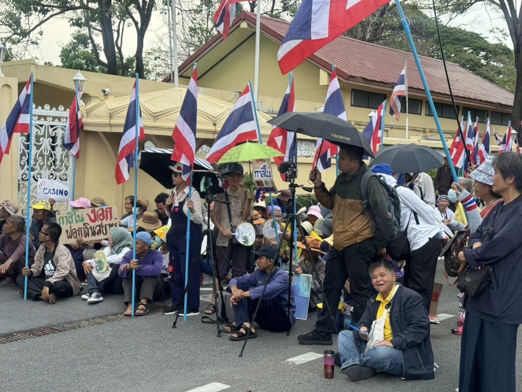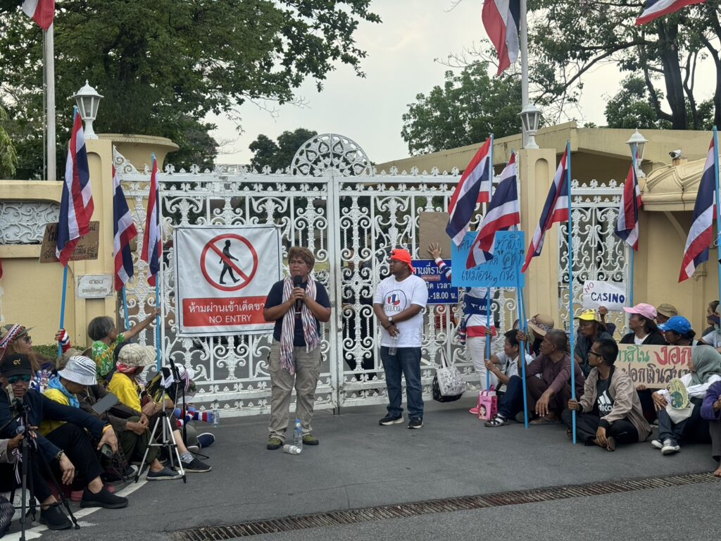 ผู้สื่อข่าวรายงานว่า กลุ่มเครือข่ายนักศึกษาประชาชนปฏิรูปประเทศไทย (คปท.) กองทัพธรรม ศูนย์รวมประชาชนปกป้องสถาบัน (ศปปส.) และ นางกรรญดา ณ หนองคาย หัวหน้าพรรคไทยภักดี ที่ได้มารวมตัวชุมนุมที่สะพานชมัยมรุเชฐ หน้าทำเนียบ เพื่อคัดค้านกาสิโนและพนันออนไลน์ ได้เดินเท้าจากทำเนียบ มายังหน้าบ้านพิษณุโลก หลังมีข่าวว่านายประเสริฐ จันทรรวงทอง กับ นายอนุทิน ชาญวีรกูล จะประชุมเรื่องการพนันออนไลน์ ที่บ้านพิษณุโลก ถนนพิษณุโลก