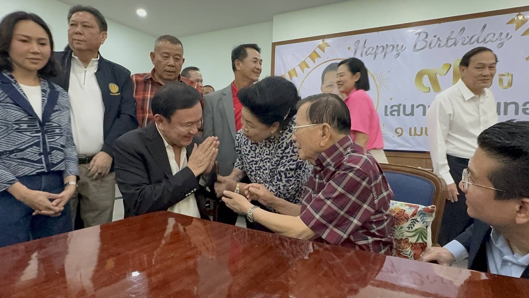 บ้านเมืองทอง 1 เม.ย. – “ทักษิณ” อวยพรวันเกิด “ป๋าเหนาะ” 92 ปี ที่บ้านเมืองทอง เจ้าตัวดีใจมาก บอกจากวันนี้จนตาย เราจะต้องอยู่ด้วยกัน ส่วน “ภูมิธรรม” นำกระเช้าของ “นายกฯ แพทองธาร” ร่วมอวยพร