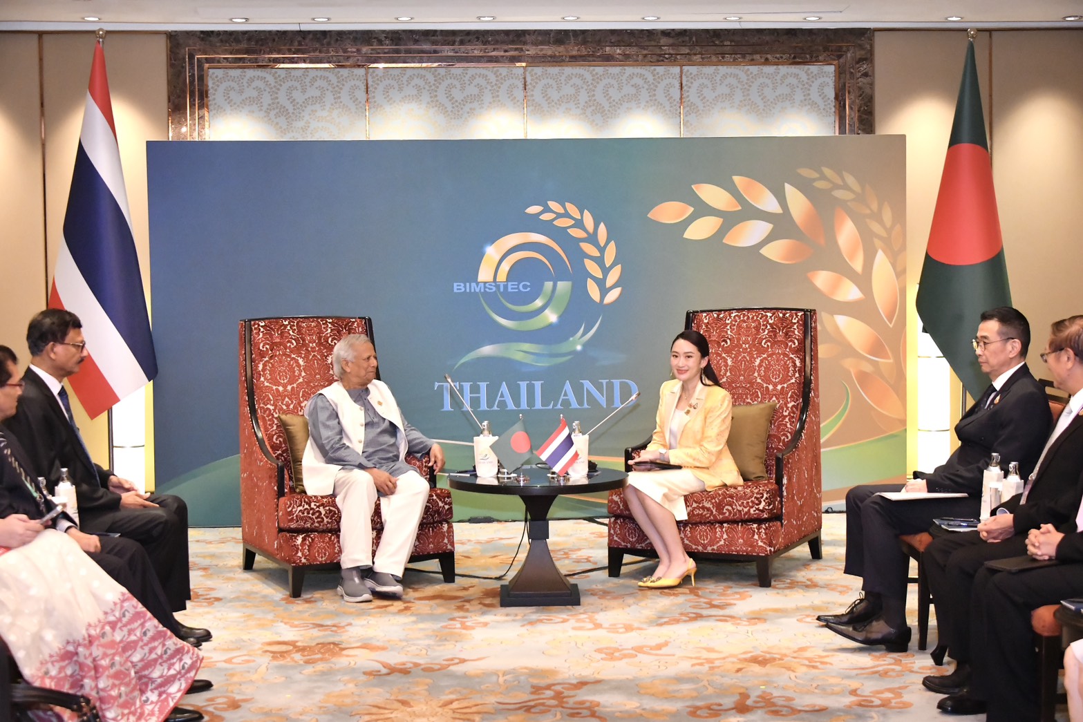 นางสาวแพทองธาร ชินวัตร นายกรัฐมนตรี หารือทวิภาคีกับ ศาสตราจารย์มูฮัมหมัด ยูนุส (His Excellency Professor Muhammad Yunus) ประธานคณะที่ปรึกษารัฐบาลสาธารณรัฐประชาชนบังกลาเทศ ในโอกาสร่วมการประชุมผู้นำบิมสเทค ครั้งที่6