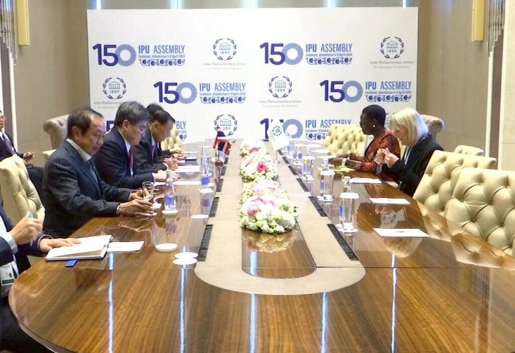 อุซเบกิสถาน 7 เม.ย. – “วันนอร์” หารือทวิภาคี “ประธาน IPU” ชื่นชมรัฐสภาไทยมีคนรุ่นใหม่สูงกว่าค่าเฉลี่ยทั่วโลก พร้อมให้กำลังใจค้นหาผู้สูญหายจากเหตุแผ่นดินไหวได้ครบถ้วน