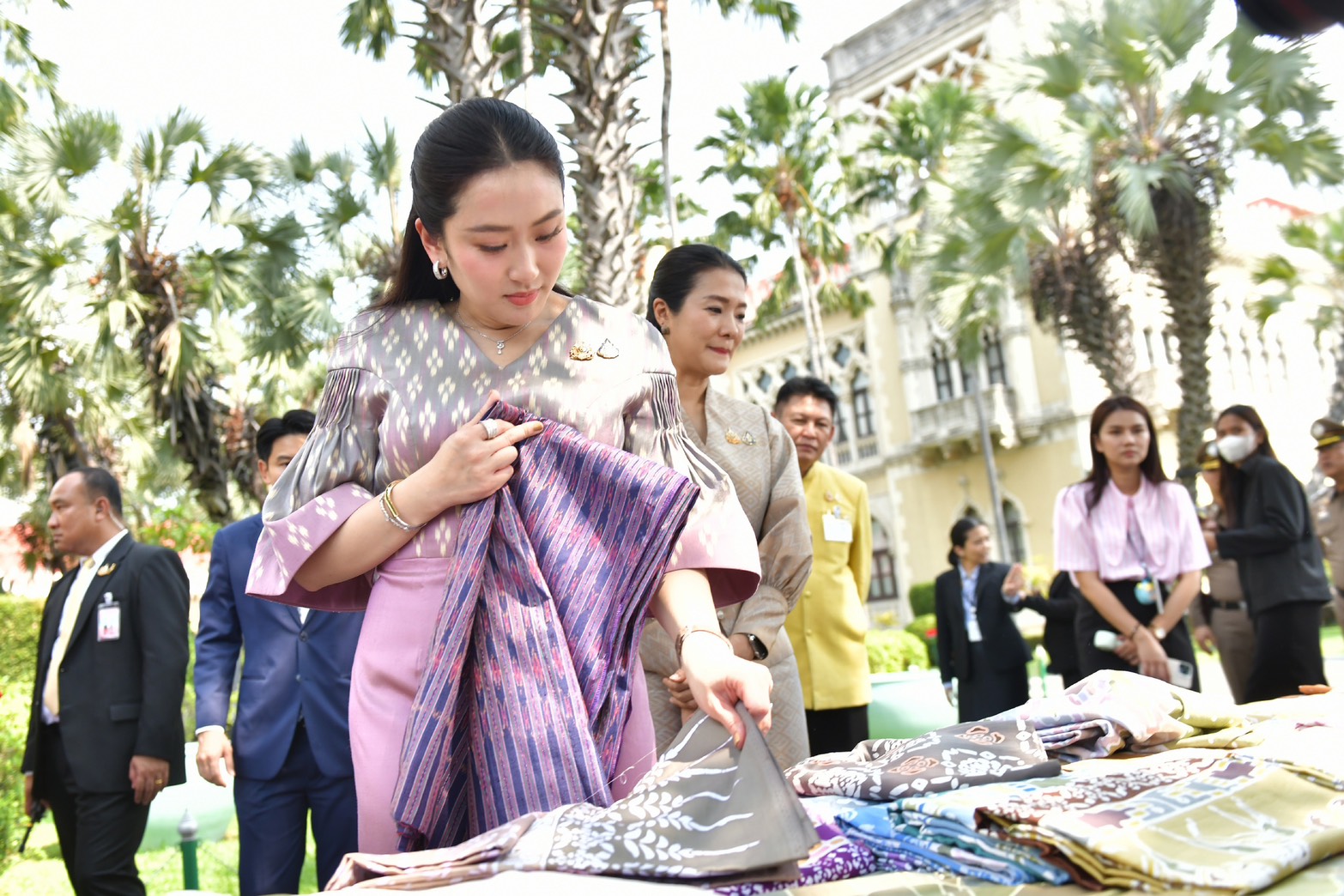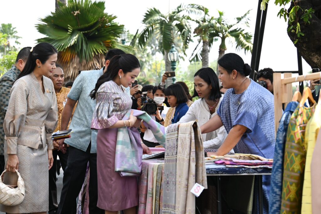โดยนายกรัฐมนตรี ได้เยี่ยมชมและเลือกซื้อผ้าไหมและผ้าบาติกรวม 9 ผืน ประกอบด้วย ผ้าบาติก ลายสิริราชพัสตราภรณ์ และลายชาติพันธุ์ รวม 5 ผืน นอกจากนี้ยังมีผ้าไหม ขิดยกดอก ลายดอกบัวตูม ผ้ามัดหมี่ลายขอเจ้าฟ้าสิริวัณวรีนารีรัตน์ ย้อมสีครั่ง ผ้ามัดหมี่ลายโบราณ จังหวัดหนองบัวลำภู ผ้าไหมแต้มหมี่ลายกราฟิก และเสื้อคลุมผ้าไหมแพรวา ลายพันมหา จังหวัดกาฬสินธุ์ 1 ตัว ซึ่งเป็นผลงานของกลุ่มผู้ประกอบการที่เคยได้รับรางวัลชนะเลิศจากการประกวดผ้าลายพระราชทานได้แก่ กลุ่มศูนย์การเรียนรู้และออกแบบขวัญตา จังหวัดหนองบัวลำภู กลุ่มผ้าทอลายมงคลมนตราธิกาญจน์ จังหวัดกาฬสินธุ์ และกลุ่มยาริงบาติก จังหวัดปัตตานี