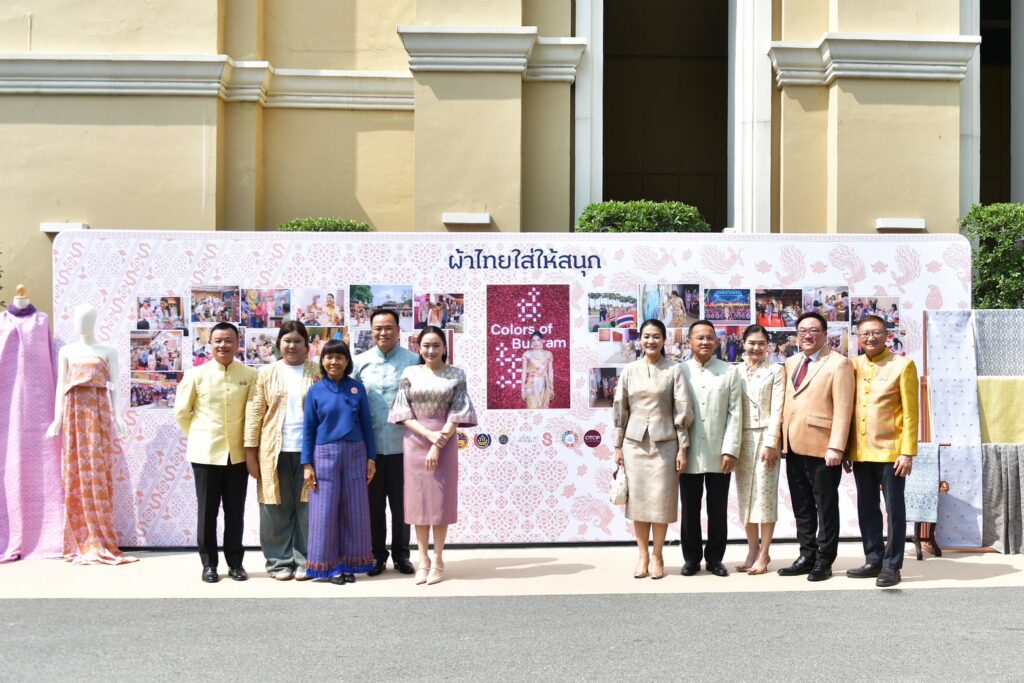 น.ส.แพทองธาร ชินวัตร นายกรัฐมนตรี พร้อมด้วยคณะรัฐมนตรี เยี่ยมชมการจัดแสดงและจำหน่ายผลิตภัณฑ์ผ้าไทยตามแนวพระดำริ “ผ้าไทยใส่ให้สนุก” เนื่องในเทศกาลสงกรานต์ ประจำปี 2568 จัดโดยกรมการพัฒนาชุมชน กระทรวงมหาดไทย โดยมีนายอนุทิน ชาญวีรกูล รองนายกรัฐมนตรีและ รัฐมนตรีว่าการกระทรวงมหาดไทย พร้อมด้วย น.ส.ธีรรัตน์ สำเร็จวาณิชย์ รัฐมนตรีช่วยว่าการกระทรมหาดไทย น.ส.จิราพร สินธุไพร รัฐมนตรีประจำสำนักนายกรัฐมนตรี นายสมศักดิ์ เทพสุทิน รัฐมนตรีว่าการกระทรวง สาธารณสุข นายจุลพันธ์ อมรวิวัฒน์ รัฐมนตรีช่วยว่าการกระทรวงการคลัง