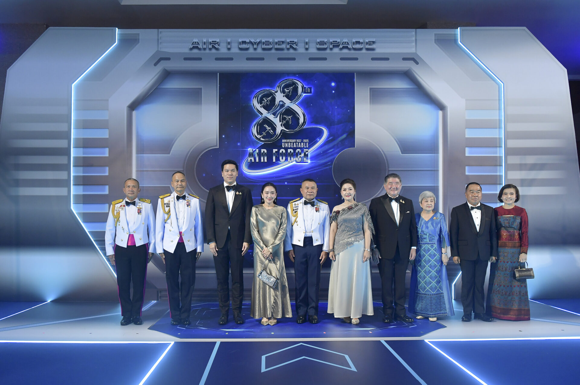 อาคารรณนภากาศ โรงเรียนนายเรืออากาศนวมินทกษัตริยาธิราช เขตสายไหม กรุงเทพฯ วันนี้ ( 8 เม.ย.) นางสาวแพทองธาร ชินวัตร นายกรัฐมนตรี พร้อมด้วยนายปิฎก สุขสวัสดิ์ คู่สมรส เป็นประธานและกล่าวสุนทรพจน์ในงานเลี้ยงรับรองเนื่องในวันกองทัพอากาศ ประจำปี 2568โดยมีนายภูมิธรรม เวชยชัย รองนายกรัฐมนตรีและรัฐมนตรีว่าการกระทรวงกลาโหม พร้อมคู่สมรส พลเอก ณัฐพล นาคพาณิชย์ รัฐมนตรีช่วยว่าการกระทรวงกลาโหม ปลัดกระทรวงกลาโหม ผู้บัญชาการทหารสูงสุด ผู้บัญชาการเหล่าทัพ ผู้บัญชาการตำรวจแห่งชาติ ตลอดจนอดีตผู้บัญชาการทหารอากาศ รวมถึงแขกรับเชิญภายนอกกองทัพอากาศ และแขกต่างประเทศ ผู้ช่วยทูตทหารต่างประเทศประจำกรุงเทพฯ ข้าราชการทหารกองทัพอากาศระดับชั้นนายพล รัฐวิสาหกิจและภาคเอกชนที่เกี่ยวข้องกับกองทัพอากาศ เข้าร่วมงาน