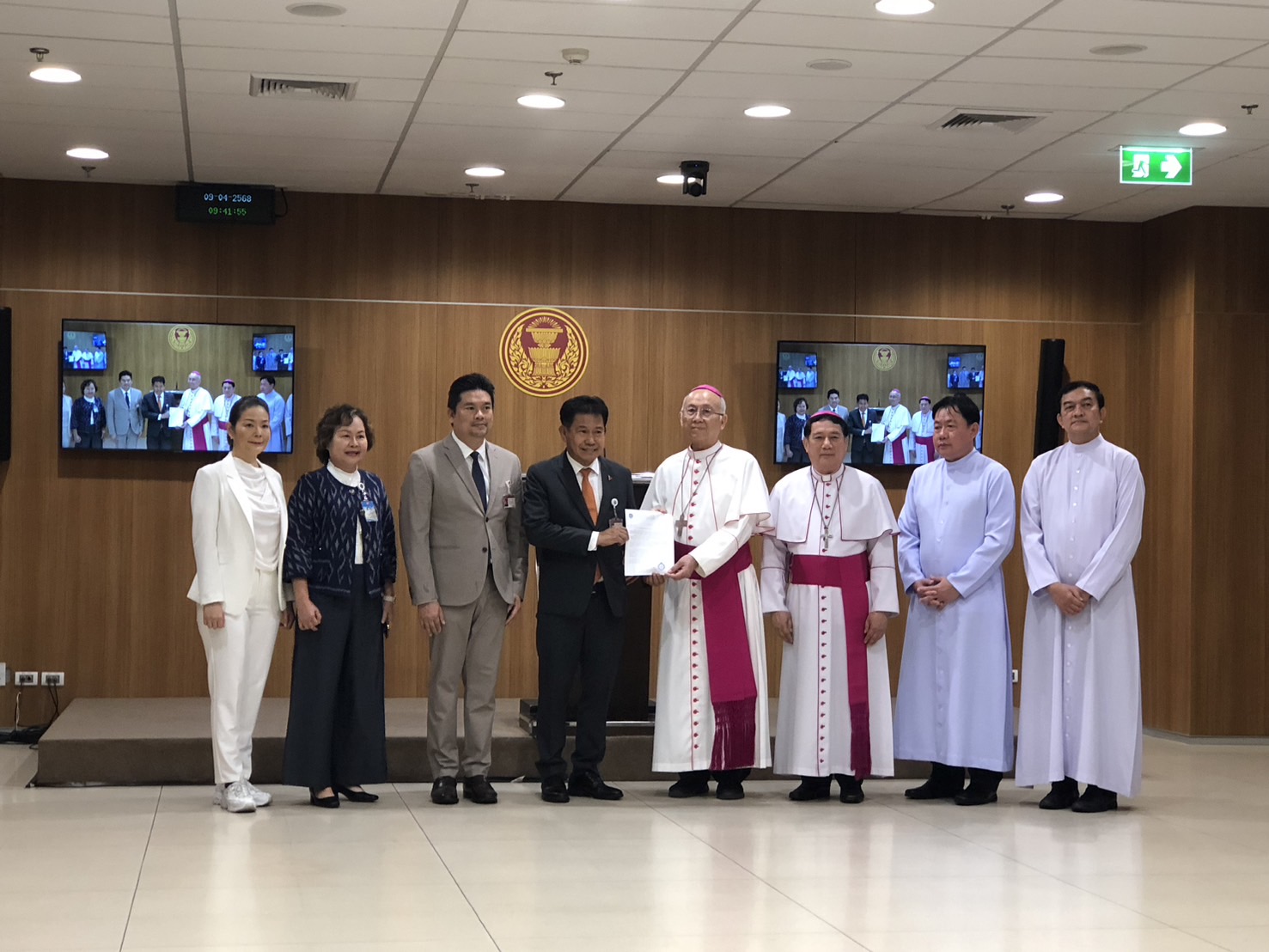 จากนั้นสภาประมุขบาทหลวงโรมันคาทอลิกแห่งประเทศไทย ได้ยื่นหนั่งสือถึงผู้นำฝ่ายค้าน ผ่านนายธีรชัย พันธุมาศ สส.พรรคประชาชน โดยนายธีรชัยกล่าวภายหลังรับหนังสือว่า ในวันนี้มีการเลื่อนพิจารณากฎหมายเอ็นเตอร์เทนเมนต์คอมเพล็กซ์ออกไปก่อน ซึ่งเราก็ไม่อยากจะมีการเร่งรีบในการพิจารณากฎหมายฉบับนี้ให้รวดเร็ว เนื่องจากจะต้องรับฟังทุกองคาพยพของประชาชนในประเทศทั้งศาสนาทุกศาสนา ภาคประชาสังคม และทุกคนที่ได้รับผลกระทบกับกฎหมายฉบับนี้ การที่รับฟังอย่างรอบคอบ รอบด้านนั้นเป็นสิ่งที่สำคัญ ซึ่งจากที่ตนประชุมวิปฝ่ายค้าน ข้าราชการประจำที่ทำกฎหมายฉบับนี้ก็มีความกังวล ว่ากฎหมายฉบับนี้อาจจะต้องมีการทบทวนใหม่หรือไม่ แต่ไม่สามารถต้านทานในส่วนของนโยบายได้ ซึ่งการยื่นหนังสือนี้ถือเป็นข้อมูลหนึ่งที่เป็นตัวแทนของประชาชน .314.-สำนักข่าวไทย