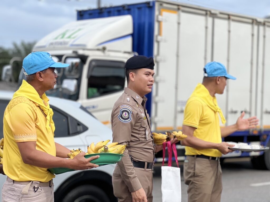 ชุมพร 12 เม.ย. – ตำรวจทางหลวงชุมพร จัดกิจกรรมจิตอาสา รณรงค์ขับขี่ปลอดภัยฯ แจกกล้วย-ซาลาเปา ของดีชุมพร-ระนอง เติมความสดชื่นให้กับประชาชนที่เดินทางลงใต้ในช่วงเทศกาลสงกรานต์