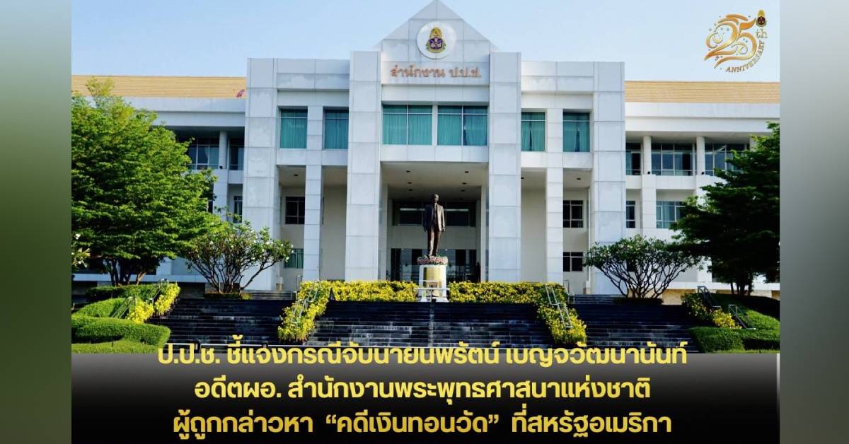 ป.ป.ช. 13 เม.ย. – ป.ป.ช. ชี้แจงกรณีจับนายนพรัตน์ เบญจวัฒนานันท์ อดีต ผอ.สำนักงานพระพุทธศาสนาแห่งชาติ ผู้ถูกกล่าวหา “คดีเงินทอนวัด” ที่สหรัฐอเมริกา