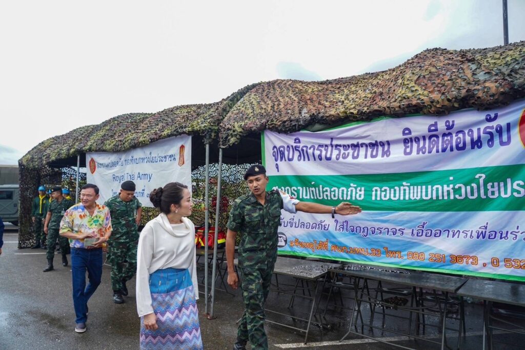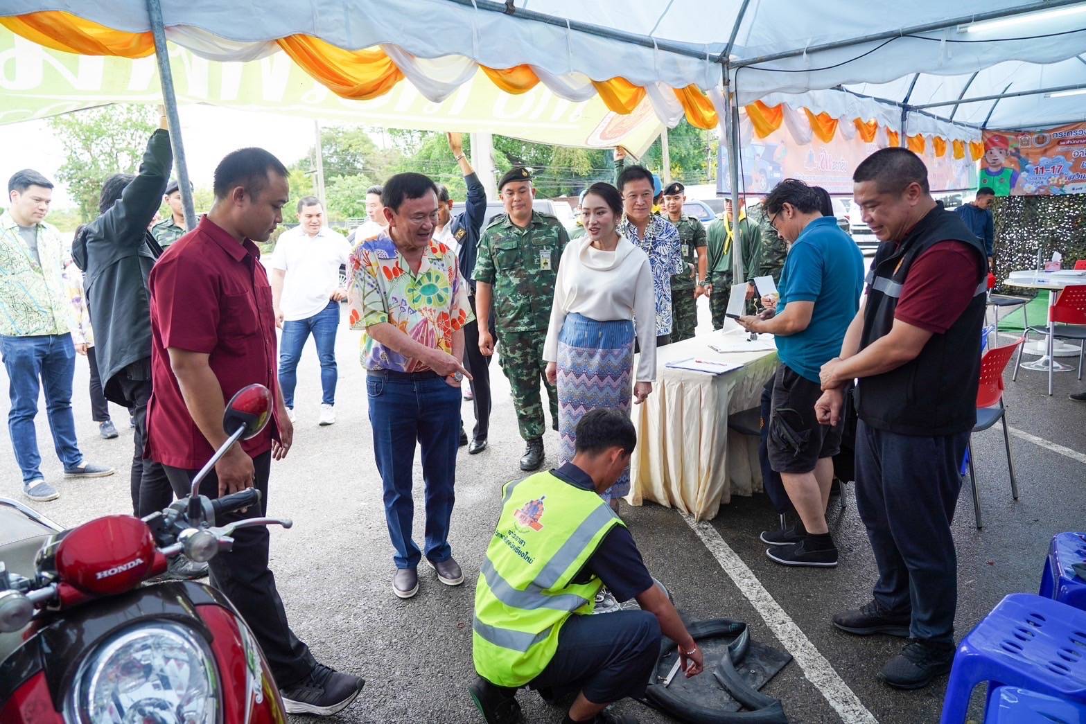น.ส.แพทองธาร ชินวัตร นายกรัฐมนตรี พร้อม นายทักษิณ ชินวัตร อดีตนายกรัฐมนตรี และนายปิฎก สุขสวัสดิ์ สามี ได้แวะจุดบริการประชาชน อาชีวะ – ขนส่ง อาสาช่วยประชาชน ช่วงเทศกาลสงกรานต์ พ.ศ. 2568 ก่อนเดินทางกลับกรุงเทพฯ หลังเสร็จสิ้นภารกิจที่จังหวัดเชียงใหม่ในช่วงสงกรานต์