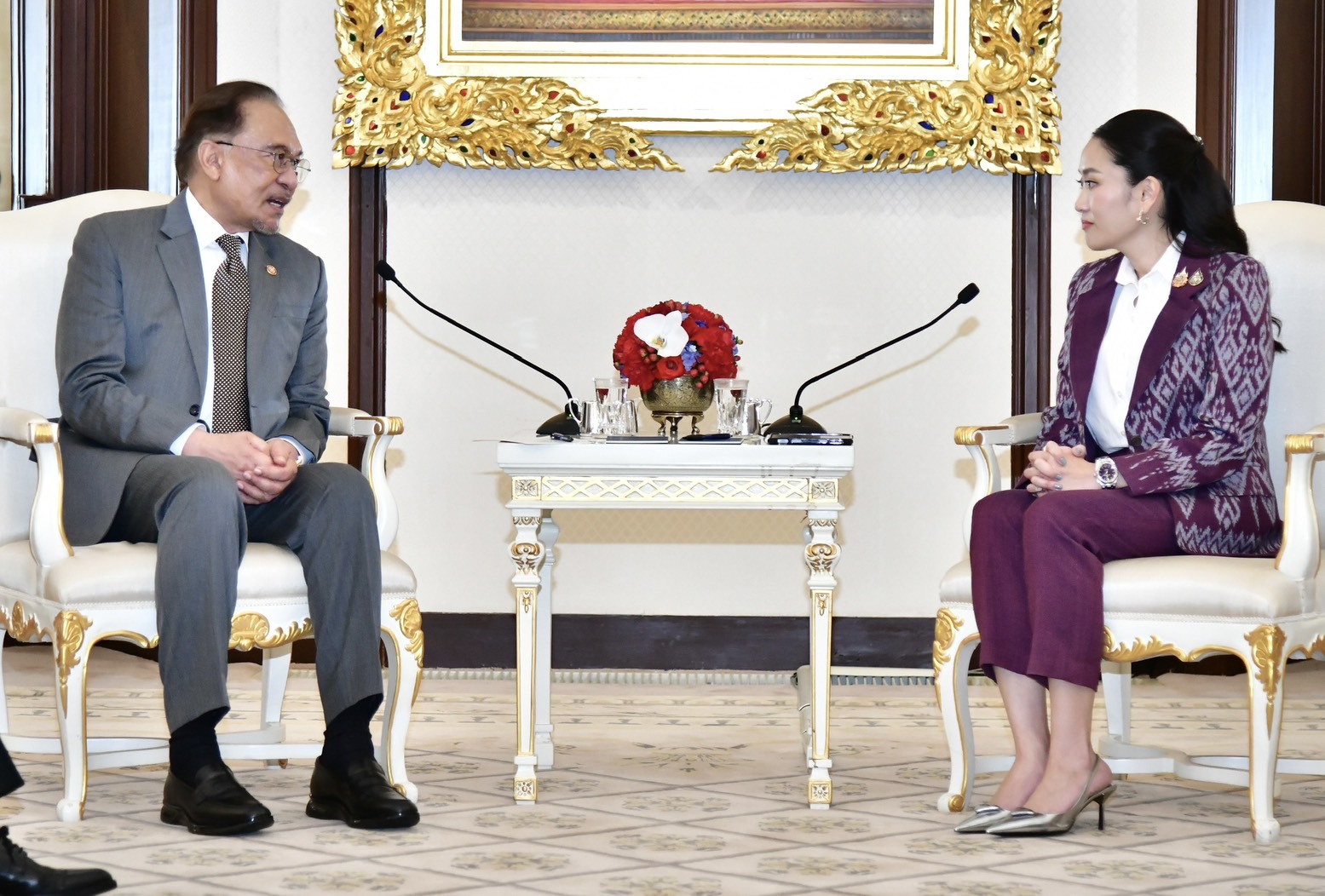 นางสาวแพทองธาร ชินวัตร นายกรัฐมนตรี ให้การต้อนรับ ดาโตะ เซอรี อันวาร์ อิบราฮิม นายกรัฐมนตรีมาเลเซีย และประธานอาเซียน เพื่อหารือทวิภาคี ในโอกาสเดินทางเยือนประเทศไทย เพื่อการเจรจาทำงาน (Working Visit) ณ ห้องสีงาช้าง ตึกไทยคู่ฟ้า ทำเนียบรัฐบาล