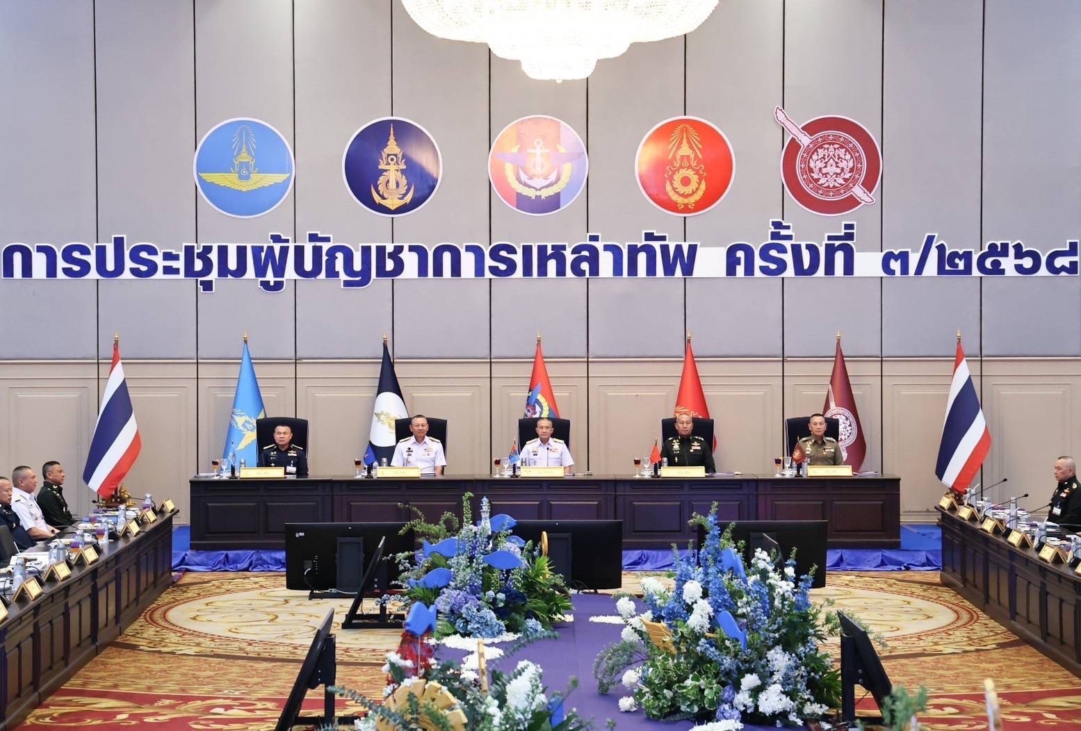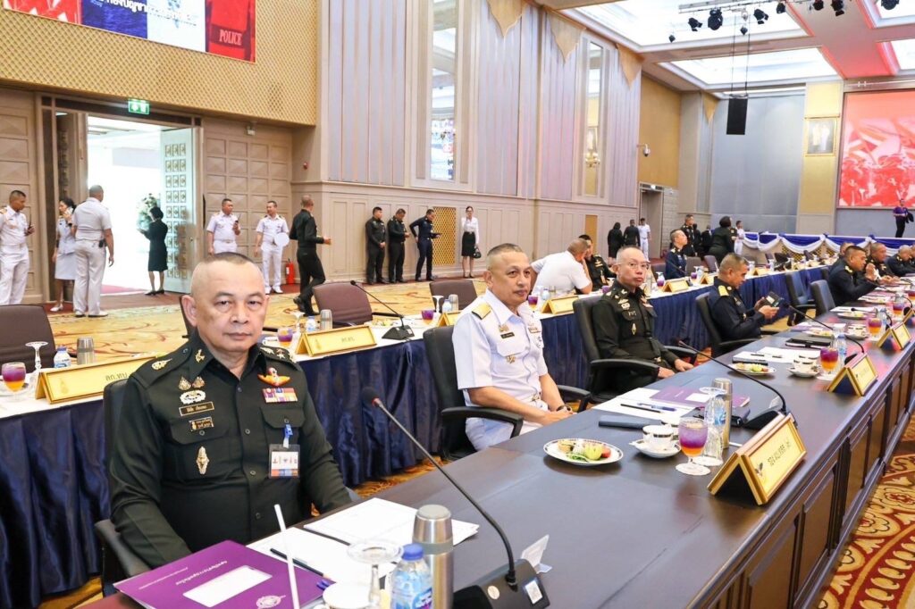 หอประชุมกองทัพเรือ 18 เม.ย.- ผบ.ทสส. นั่งหัวโต๊ะถก ผบ.เหล่าทัพ ขอบคุณกำลังพลช่วยเหลือกรณีแผ่นดินไหว ดูแลความปลอดภัยสงกรานต์ ขณะทุกเหล่าทัพเห็นพ้องร่วมกันศึกษาแนวทางการพัฒนาการปฏิบัติการพิเศษ เพื่อเป็นแนวทางพัฒนากองทัพไทยร่วมกันต่อไป