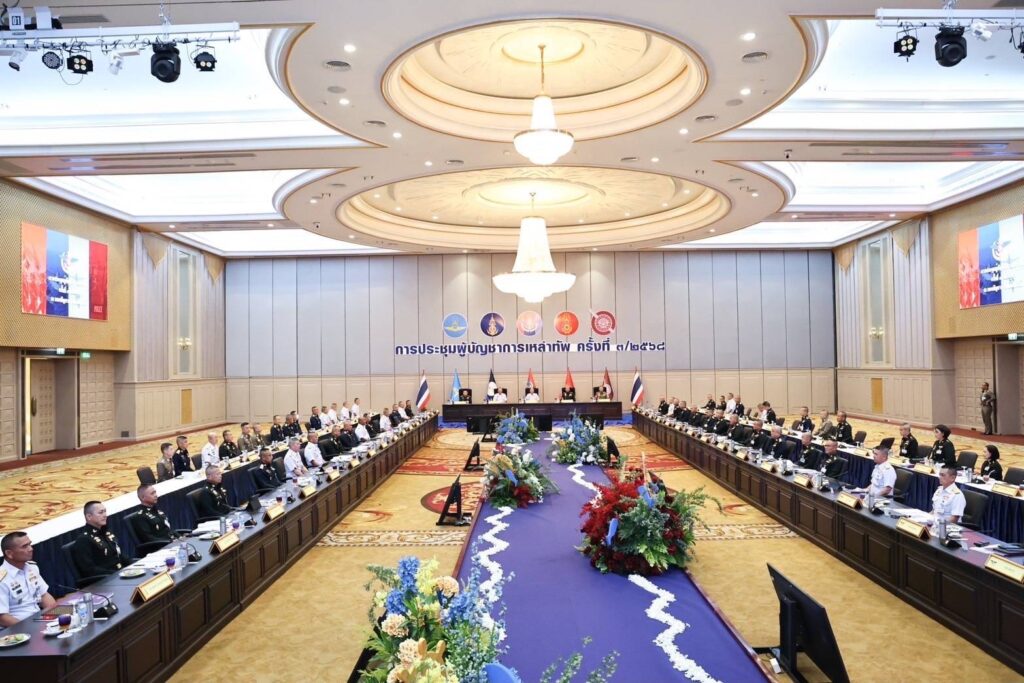 พลเอก ทรงวิทย์ หนุนภักดี ผู้บัญชาการทหารสูงสุด เป็นประธานการประชุมผู้บัญชาการเหล่าทัพ ครั้งที่ 3 ประจำปี 2568 โดยมี พลเอก พนา แคล้วปลอดทุกข์ ผู้บัญชาการทหารบก ,พลเรือเอก จิรพล ว่องวิทย์ ผู้บัญชาการทหารเรือ ,พลอากาศเอก พันธ์ภักดี พัฒนกุล ผู้บัญชาการทหารอากาศ และพลตำรวจเอก กิตติ์รัฐ พันธุ์เพ็ชร์ ผู้บัญชาการตำรวจแห่งชาติ เข้าร่วมประชุม ณ หอประชุมกองทัพเรือ