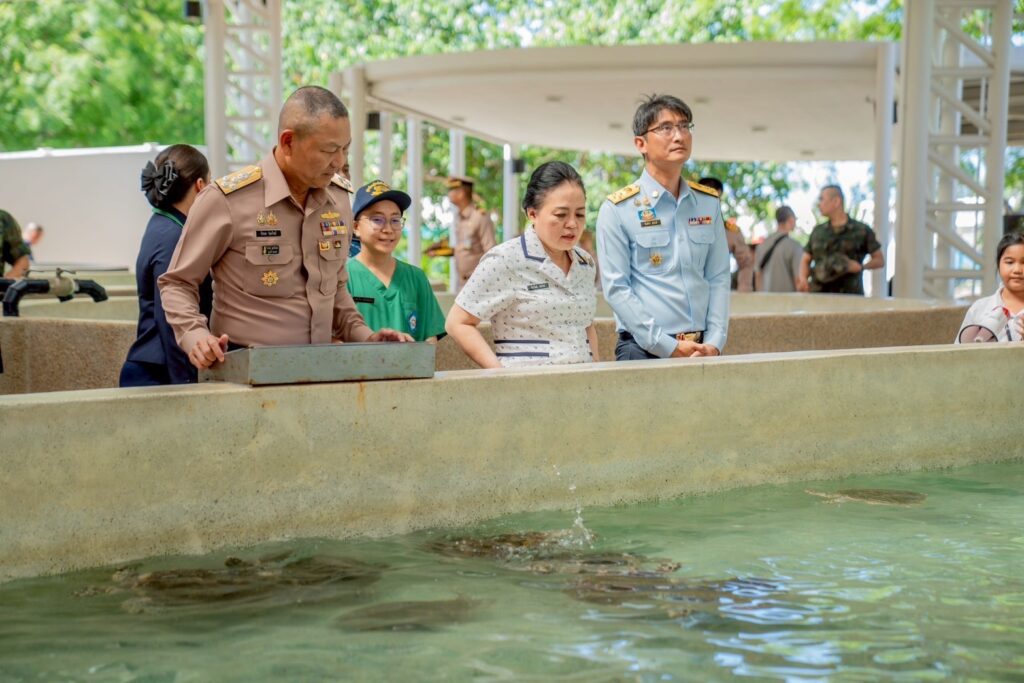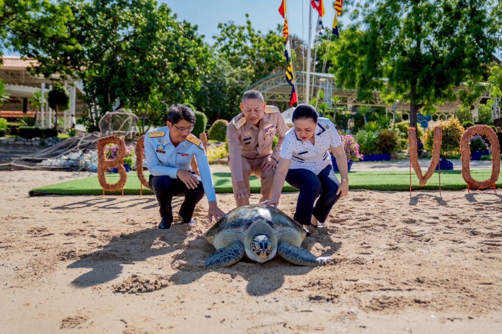 สัตหีบ 20 เม.ย. – ผบ.ทร. พร้อมด้วยนายกสมาคมภริยาทหารเรือ เป็นประธานในพิธีปล่อยเต่าทะเล “นัองเต่าสีชัง” กลับคืนสู่ธรรมชาติ