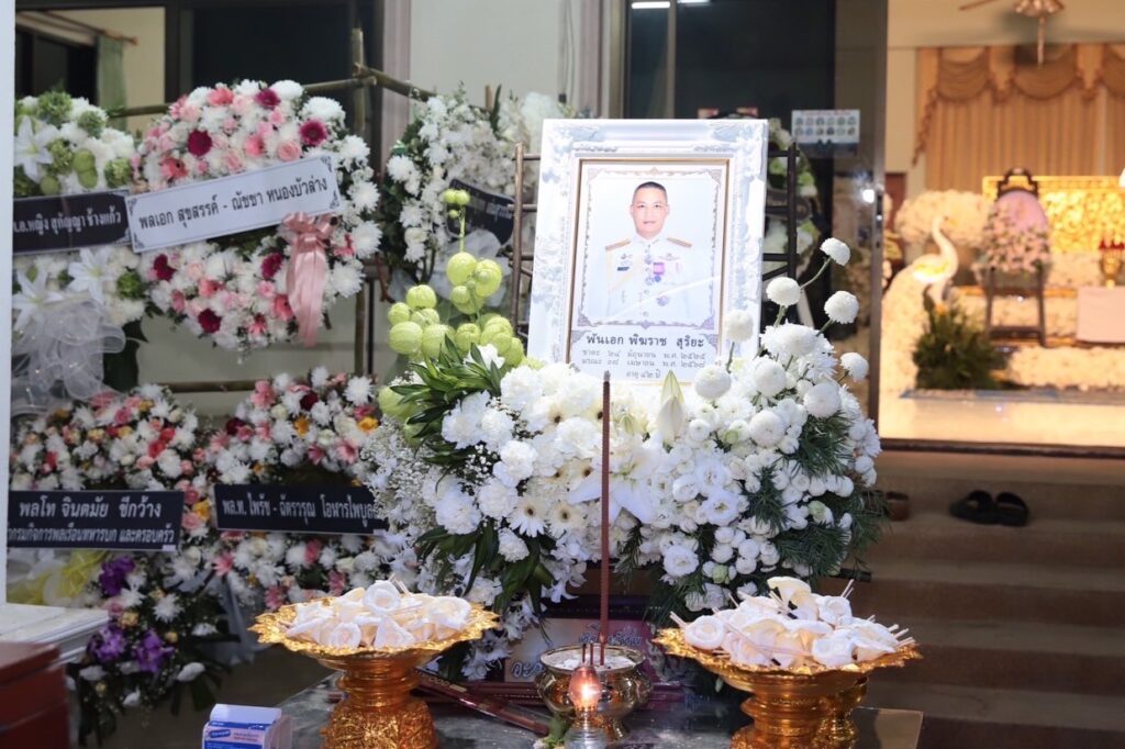 ผู้สื่อข่าว รายงานว่า ช่วงค่ำวานนี้ (21 เม.ย.68) พลเอก พนา แคล้วปลอดทุกข์ ผู้บัญชาการทหารบก/ผู้อำนวยการศูนย์ประสานงานโครงการจิตอาสาพระราชทานกองทัพบก เดินทางไปเป็นประธานในพิธีสวดพระอภิธรรมศพ พันเอก พิฆราช สุริยะ หัวหน้ากองกิจการพลเรือน มณฑลทหารบกที่ 11 / ผบ.พื้นที่ กองอำนวยการ ศูนย์บัญชาการภัยพิบัติ กองทัพภาคที่ 1 ส่วนหน้า ณ วัดสันทรายต้นกอก ต.ฟ้าฮ่าม อ.เมืองเชียงใหม่ จ.เชียงใหม่ ซึ่งเป็นพิธีสวดในคืนที่ 2 หลังจากคืนแรก (20 เม.ย.68) ได้ประกอบพิธีพระราชทานน้ำหลวงอาบศพ และพิธีอัญเชิญพวงมาลาพระราชทาน ด้วยพระบาทสมเด็จพระเจ้าอยู่หัว และ สมเด็จพระนางเจ้าฯ พระบรมราชินี ทรงพระกรุณาโปรดเกล้าโปรดกระหม่อม พระราชทานพวงมาลาวางหน้าหีบศพ เพื่อเป็นเกียรติกับ พันเอก พิฆราช สุริยะ และครอบครัว