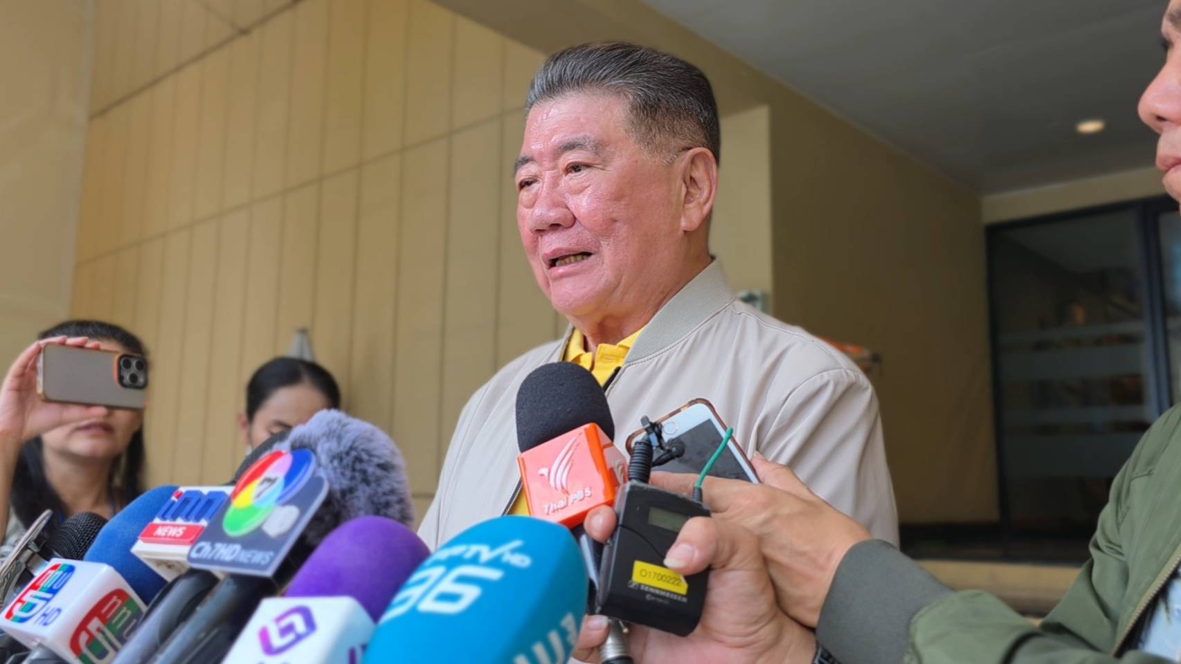 นายภูมิธรรม เวชยชัย รองนายกรัฐมนตรี และรัฐมนตรีว่าการกระทรวงกลาโหม ในฐานะแกนนำพรรคเพื่อไทย ให้สัมภาษณ์ถึงการเดินจับมือคู่กับนายอนุทิน ชาญวีรกูล รองนายกรัฐมนตรี และ รัฐมนตรีว่าการกระทรวงมหาดไทย ในฐานะหัวหน้าพรรคภูมิใจไทย ลงจากตึกไทยคู่ฟ้าวานนี้ (22 เม.ย.) เป็นการส่งสัญญาณอะไรหรือไม่ โดยนายภูมิธรรมหัวเราะก่อนกล่าวว่า ตนกับนายอนุทินทำงานร่วมกันมาอย่างดี เมื่อวานเราประชุมเร่งรัดการใช้จ่ายงบประมาณรายจ่ายประจำปีงบประมาณ 2568 ร่วมกับนายกรัฐมนตรี ซึ่งมีกระทรวงต่างๆ ที่เกี่ยวข้องเข้าร่วมด้วย เนื่องจากนายกฯห่วงใยในเรื่องเงินค้างจ่าย ซึ่งการประชุมครั้งนี้นายกฯพึงพอใจ เพราะทุกคนสามารถดำเนินการได้ทั้งหมด และเชื่อว่าเงินทั้งหมดจะถูกใช้ภายในเดือน ก.ย.68 ทั้งนี้ ปกติเราจะเดินคุยกัน จับไม้จับมือกันอยู่แล้ว เป็นเรื่องธรรมดา เป็นความสัมพันธ์ที่ดีต่อกัน ส่วนเรื่องอื่นเป็นแต่ละเรื่องแต่ละราวไป