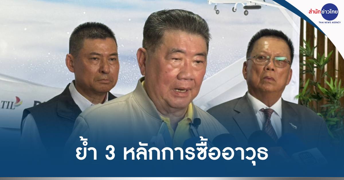 นายภูมิธรรม เวชยชัย รองนายกรัฐมนตรี และรัฐมนตรีว่าการกระทรวงกลาโหม ให้สัมภาษณ์หลังตรวจเยี่ยมการสาธิตยุทธโธปกรณ์ สำหรับช่วยลดฝุ่นและดับไฟป่าโดยบริษัทเอกชนร่วมทุนกับสถาบันเทคโนโลยีป้องกันประเทศ ถึงแนวทางการจัดซื้ออาวุธของกองทัพว่าต้องคำนึงถึงกรอบ 3 ด้านคือ 1ความต้องการต้องสอดคล้องภารกิจไม่ใช่ซื้อมาแค่ความเท่ 2 ต้องคำนึงถึงประสิทธิภาพในการใช้งานและสอดคล้องกับสถานการณ์และ 3 มีความเหมาะสมกับงบประมาณและการปฎิบัติงานในพื้นที่เช่นในสามจังหวัดชายแดนภาคใต้ก็ต้องจัดหายุทโธปกรณ์ ที่เหมาะสมกับภารกิจ เช่น การนำโดรนมาใช้ช่วย ภารกิจที่ดียิ่งขึ้น หรือการใช้ยุทโธปกรณ์ เพื่อช่วยเหลือประชาชนในการลดปัญหาหมอกควันเป็นต้น
