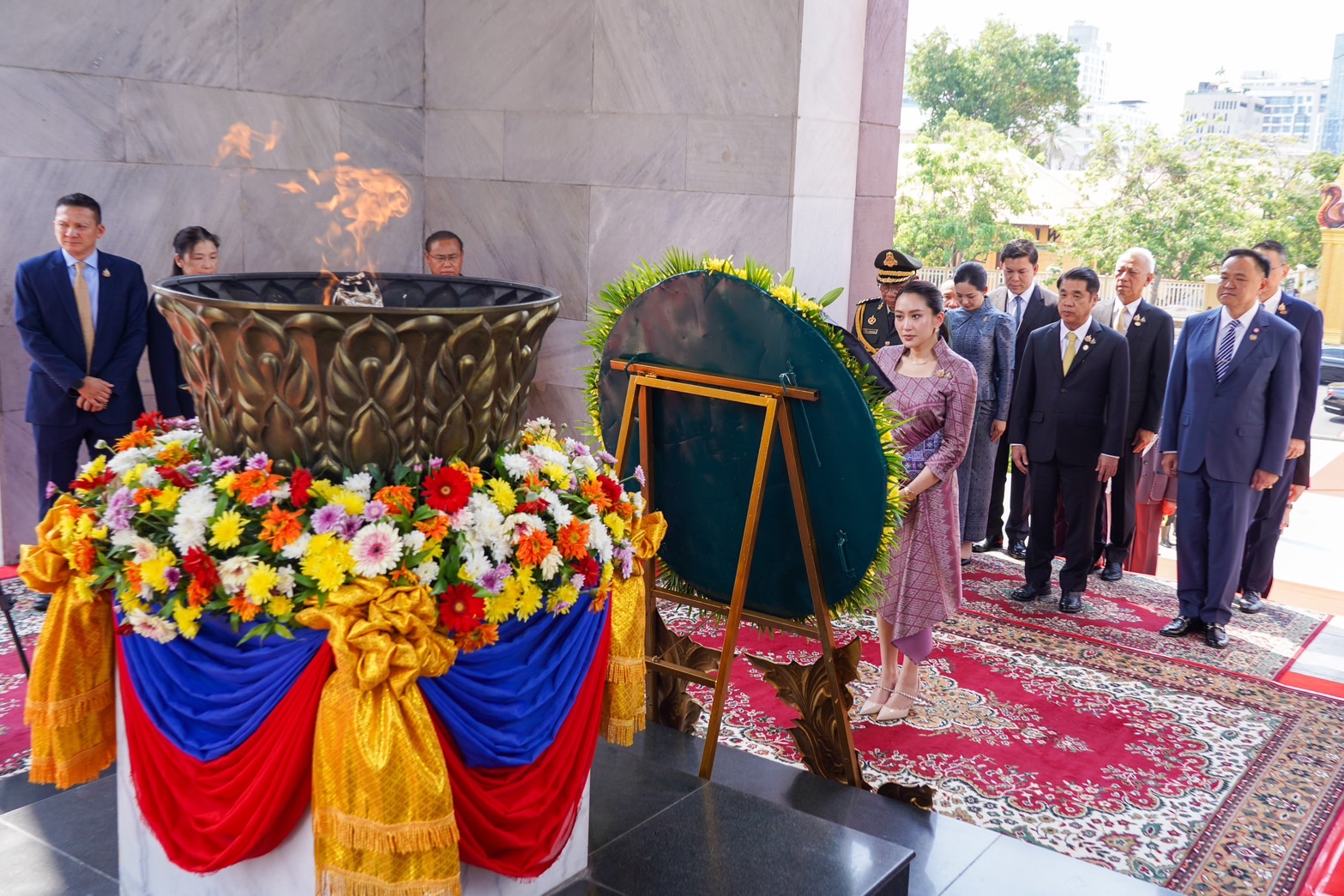 เมื่อเวลา 14.30 น. ตามเวลากรุงพนมเปญ ซึ่งตรงกับประเทศไทย นางสาวแพทองธาร ชินวัตร นายกรัฐมนตรี พร้อมคณะ เดินทางไปวางพวงมาลา ณ วิมานเอกราช (Independence Monument) โดยมีผู้แทนกระทรวงกลาโหมกัมพูชาให้การต้อนรับ