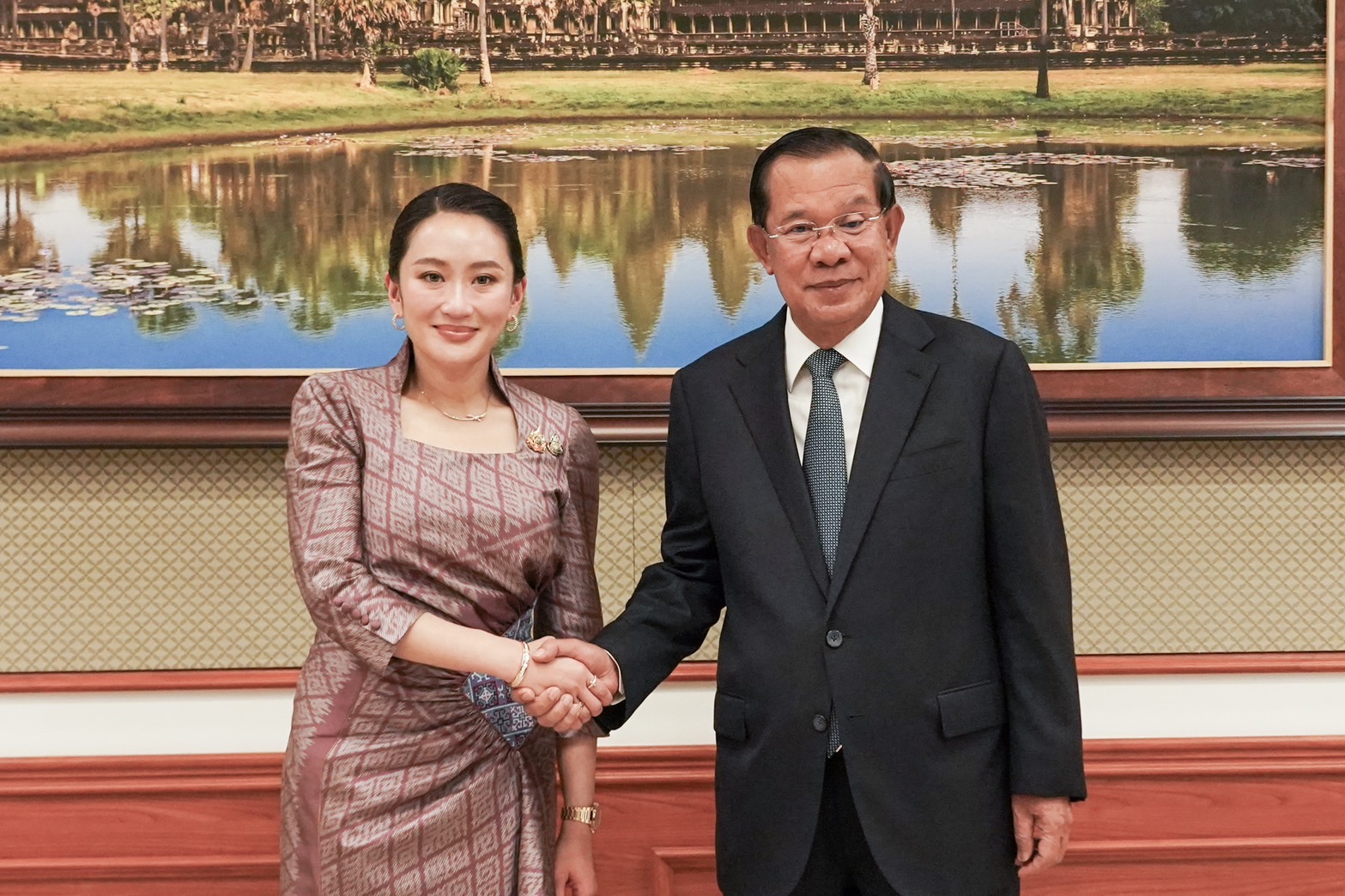 วันนี้ (23 เม.ย. 68) เวลา 16.00 น. (ตามเวลาท้องถิ่นกรุงพนมเปญ ซึ่งเท่ากับกรุงเทพฯ) ณ วุฒิสภาราชอาณาจักรกัมพูชา (Senate House) นางสาวแพทองธาร ชินวัตร นายกรัฐมนตรี เข้าเยี่ยมคารวะสมเด็จอัครมหาเสนาบดีเดโช ฮุน เซน (Samdech Akka Moha Sena Padei Techo HUN SEN) ประธานวุฒิสภาและประธานองคมนตรีแห่งราชอาณาจักรกัมพูชา