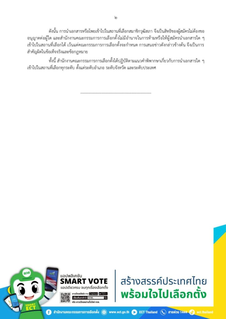 ดังนั้นการนำเอกสารหรือโพยเข้าไปในสถานที่เลือก สว. จึงเป็นสิทธิของผู้สมัครไม่ต้องขออนุญาตต่อผู้ใด และสำนักงาน กกต.ไม่มีอำนาจในการห้ามหรือให้ผู้สมัครนำเอกสารใดๆเข้าไปในสถานที่เลือกได้เว้นแต่ กกต. จะกำหนด การเสนอข่าวดังกล่าวข้างต้นจึงเป็นการสำคัญผิดในข้อเท็จจริงและข้อกฎหมาย ซึ่ง กกต. ได้ปฏิบัติตามคำพิพากษาเกี่ยวกับการนำเอกสารใดๆ เข้าไปในสถานที่เลือกทุกระดับ ตั้งแต่ระดับอำเภอ ระดับจังหวัดและระดับประเทศ.-314-สำนักข่าวไทย