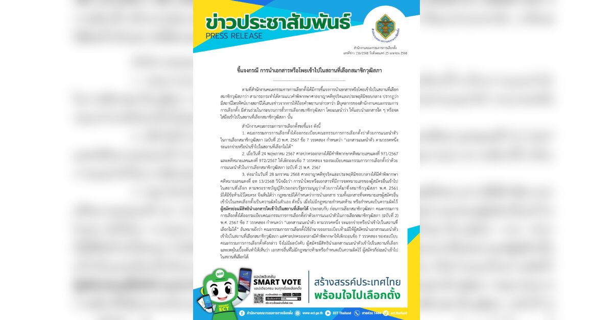 กกต. 25 เม.ย. – กกต. แจงไม่มีกฎหมายห้ามผู้สมัครนำโพยเข้าสถานที่เลือก สว. เหตุศาลสั่งเพิกถอนระเบียบ กกต.ห้ามหาเสียง ระบุ กกต.ไม่มีอำนาจสั่งห้าม โต้สื่อเสนอข่าวบิดเบือนข้อเท็จจริง-ข้อกฎหมาย ลั่น กกต. ออกระเบียบกันแล้ว
