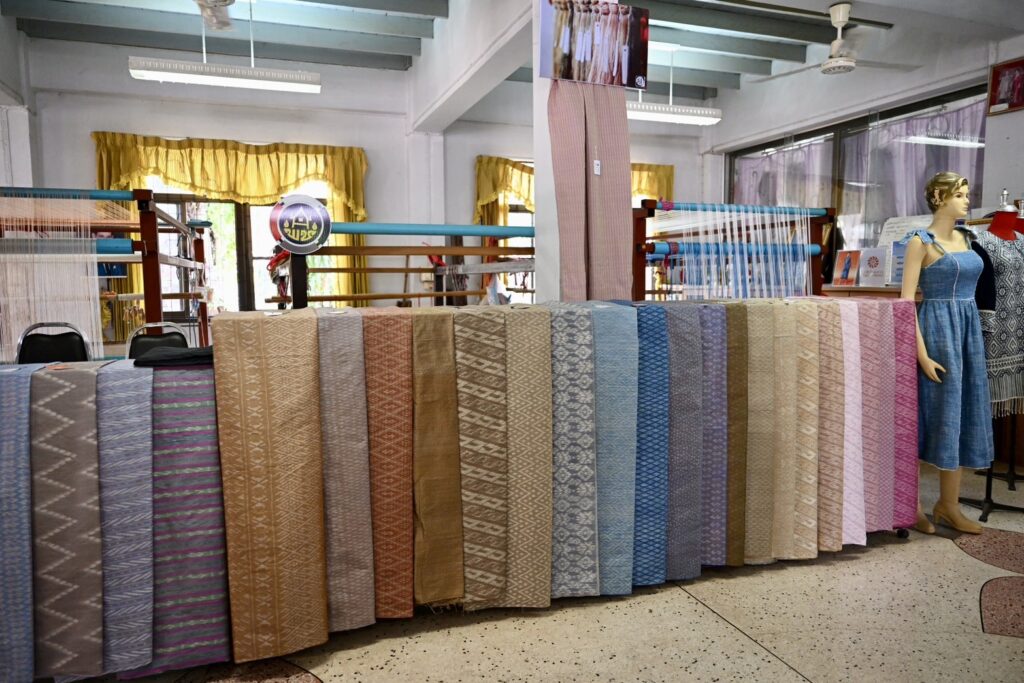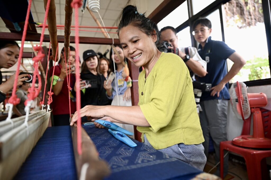 โอกาสนี้ คณะสื่อมวลชนเข้าชมกระบวนการผลิต การออกแบบลายผ้า และการดำเนินงานทอผ้าไหมย้อมสีธรรมชาติ สำหรับนำไปตัดเสื้อ “ศรีโคตรบูร” ของคณะรัฐมนตรีที่จะสวมใส่ในการเข้าร่วมประชุม ครม.อย่างเป็นทางการนอกสถานที่ครั้งที่ 2/2568 ในวันที่ 29 เมษายน 2568