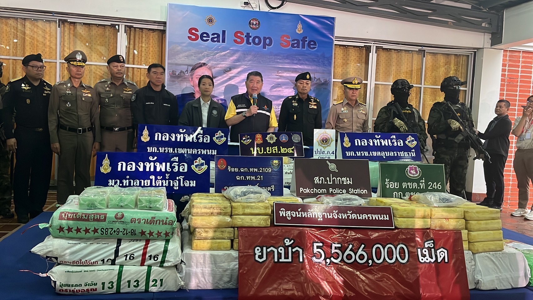ที่หน่วยเรือรักษาความสงบเรียบร้อยตามลำแม่น้ำโขง (นรข.) อำเภอเมือง จังหวัดนครพนม นายภูมิธรรม เวชยชัย รองนายกรัฐมนตรีและรัฐมนตรีว่าการกระทรวงกลาโหม แถลงข่าวแทน นางสาวแพทองธาร ชินวัตร นายกรัฐมนตรี ถึงผลสำเร็จในการปราบปรามยาเสพติดและตรวจยึดของกลาง ผ่านการบูรณาการระหว่าง หน่วยบัญชาการสกัดกั้นและปราบปรามยาเสพติด สารตั้งต้น และเคมีภัณฑ์ชายแดนภาคตะวันออกเฉียงเหนือ (นบ.ยส.24) และหน่วยงานในพื้นที่ ว่า จังหวัดนครพนม เป็นพื้นที่ที่มีการลำเลียงยาเสพติดเพื่อเข้ามาในพื้นที่ชั้นในของประเทศมากที่สุด โดยปฏิบัติการในขณะนี้ สามารถปราบปรามยาเสพติดได้เป็นผลดี ซึ่งสำนักงานคณะกรรมการป้องกันและปราบปรามยาเสพติด (ป.ป.ส.) เป็นผู้สนับสนุนทั้งงบประมาณ ข้อมูล และเครื่องมือในการดำเนินการ เพื่อให้หน่วยงานในพื้นที่สามารถปฏิบัติงานได้อย่างมีประสิทธิภาพ