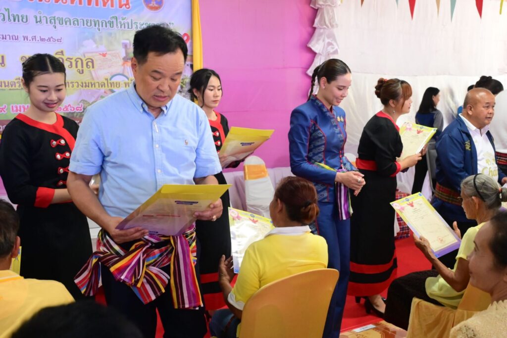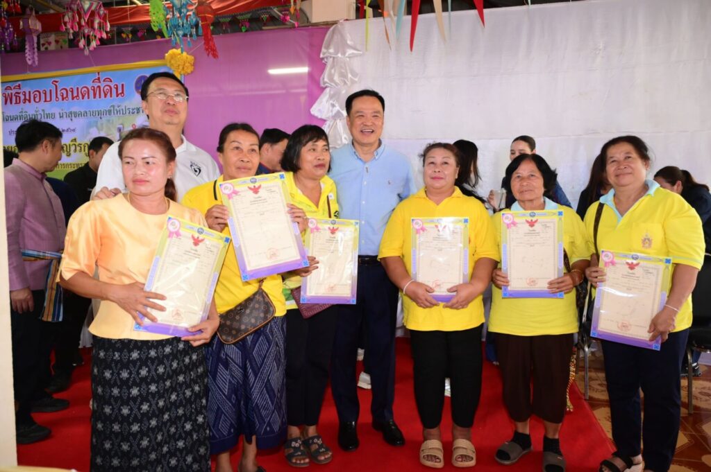 นายอนุทิน ชาญวีรกูล รองนายกรัฐมนตรีและรมว.มหาดไทย เป็นประธานพิธีมอบโฉนดที่ดินตามโครงการ “มอบโฉนดที่ดินทั่วไทย นำสุขคลายทุกข์ให้ประชาชน” ตามโครงการเดินสำรวจออกโฉนดที่ดิน ประจำปี 2568 ณ วัดม่วงสุม หมู่ 3 บ้านนามน ต.นาเลียง อ.นาแก จ.นครพนม โดยนายทรงศักดิ์ ทองศรี รมช.มหาดไทย น.ส.ซาบีดา ไทยเศรษฐ์ รมช.มหาดไทย นายอรรษิษฐ์ สัมพันธรัตน์ ปลัดกระทรวงมหาดไทย นายไชยวัฒน์ จุนถิระพงศ์ อธิบดีกรมการปกครอง นายสยาม ศิริมงคล อธิบดีกรมการพัฒนาชุมชน นางรณิดา เหลืองฐิติสกุล ผู้ตรวจราชการกระทรวงมหาดไทย เขตตรวจราชการที่ 11 และนายปราชญา อุ่นเพชรวรากร ผู้ว่าราชการจังหวัดนครพนม ร่วมด้วย