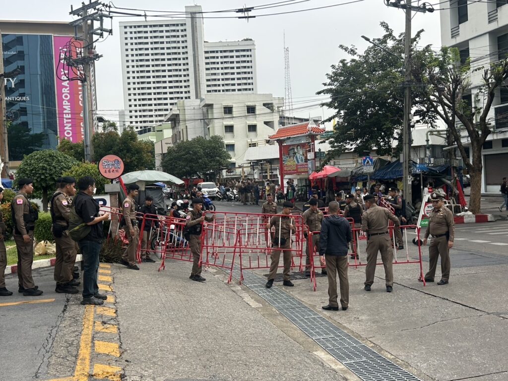 ผู้สื่อข่าวรายงานบรรยากาศบริเวณด้านหน้าโรงแรม รอยัล ออคิด เซอราตัน ริเวอร์ไซด์ กรุงเทพฯ พล.ต.ต.สามารถ พรหมชาติ ผบก.น.6. นำกำลังเจ้าหน้าที่ตำรวจ จาก สน.บางรัก และ สน.พลับพลาไชย 2 จำนวน 40 นาย พร้อมกำลังเจ้าหน้าที่ตำรวจกองบังคับการอารักขาและควบคุมฝูงชน จำนวน 1 กองร้อยมาควบคุมสถานการณ์ โดยมีกลุ่มผู้ชุมนุมจำนวนหนึ่งมาปราศรัยเรียกร้องให้นายภูมิธรรมและฝ่ายไทยรักษาผลประโยชน์ของประเทศไทย ในการประชุมและเจรจา และมีการโจมตีเรื่อง MOU 44 แต่ไม่มีเหตุการณ์รุนแรงใดใดเกิดขึ้น.-313.-สำนักข่าวไทย