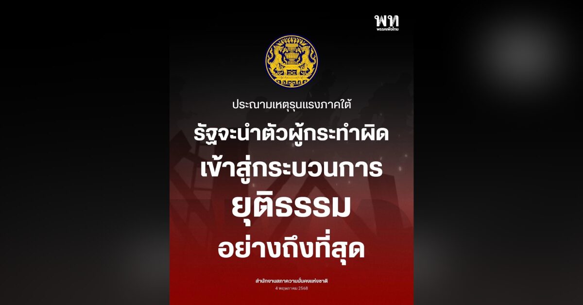 กทม. 5 พ.ค. – พรรคเพื่อไทย โพสต์แถลงการณ์ สมช. ประณามเหตุรุนแรงชายแดนใต้ ให้คำมั่นรัฐจะนำตัวผู้กระทำผิดเข้าสู่กระบวนการยุติธรรมอย่างถึงที่สุด มุ่งคุ้มครองและปกป้องประชาชนผู้บริสุทธิ์