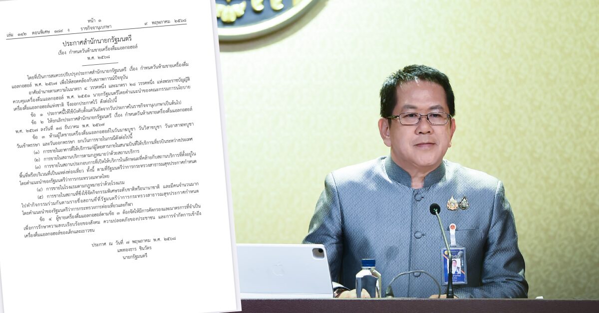 นายจิรายุ ห่วงทรัพย์ โฆษกประจำสำนักนายกรัฐมนตรี เปิดเผยว่า หลังจากที่ประชุมคณะกรรมการนโยบายเครื่องดื่มแอลกอฮอล์แห่งชาติ เมื่อเดือนมีนาคม 2568 เห็นชอบ ให้ผ่อนคลายการขายเครื่องดื่มแอลกอฮอล์ บางพื้นที่ในวันหยุดพิเศษ 5 วันทางศาสนา ซึ่งนายประเสริฐ จันทรรวงทอง รองนายกรัฐมนตรี และรัฐมนตรีว่ากระทรวงดิจิทัลเพื่อเศรษฐกิจและสังคม เป็นประธานการประชุมคณะกรรมการนโยบายเครื่องดื่มแอลกอฮอล์แห่งชาติ ได้สรุปผลการพิจารณาในทุกมิติเพื่อดูความเหมาะสมกับโลกปัจุบัน และที่ประชุมได้เห็นชอบให้ผ่อนคลายการขายเครื่องดื่มแอลกอฮอล์ ซึ่งจากนั้นจะเป็นขั้นตอนในราชกิจจานุเบกษา ซึ่งได้เผยแพร่ประกาศสำนักนายกรัฐมนตรี ดังกล่าวในวันศุกร์ ที่9 พฤษภาคม 2568 ปรับปรุงประกาศสำนักนายกรัฐมนตรี เรื่อง การกำหนดวันห้ามขายเครื่องดื่มแอลกอฮอล์ พ.ศ. 2567 เพื่อให้สอดคล้องกับสภาพการณ์ปัจจุบัน โดยคำแนะนำของคณะกรรมการนโยบายเครื่องดื่มแอลกอฮอล์แห่งชาติ