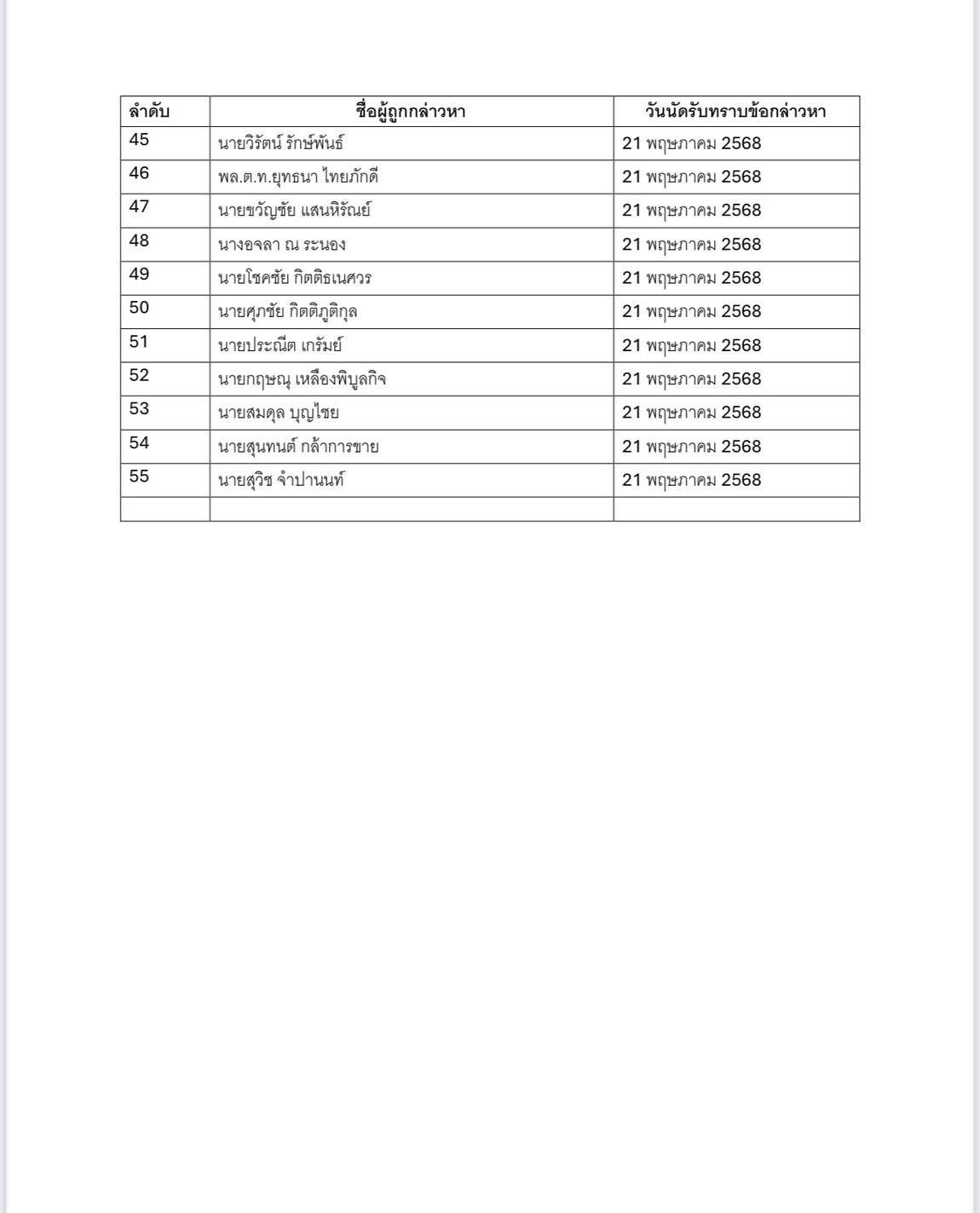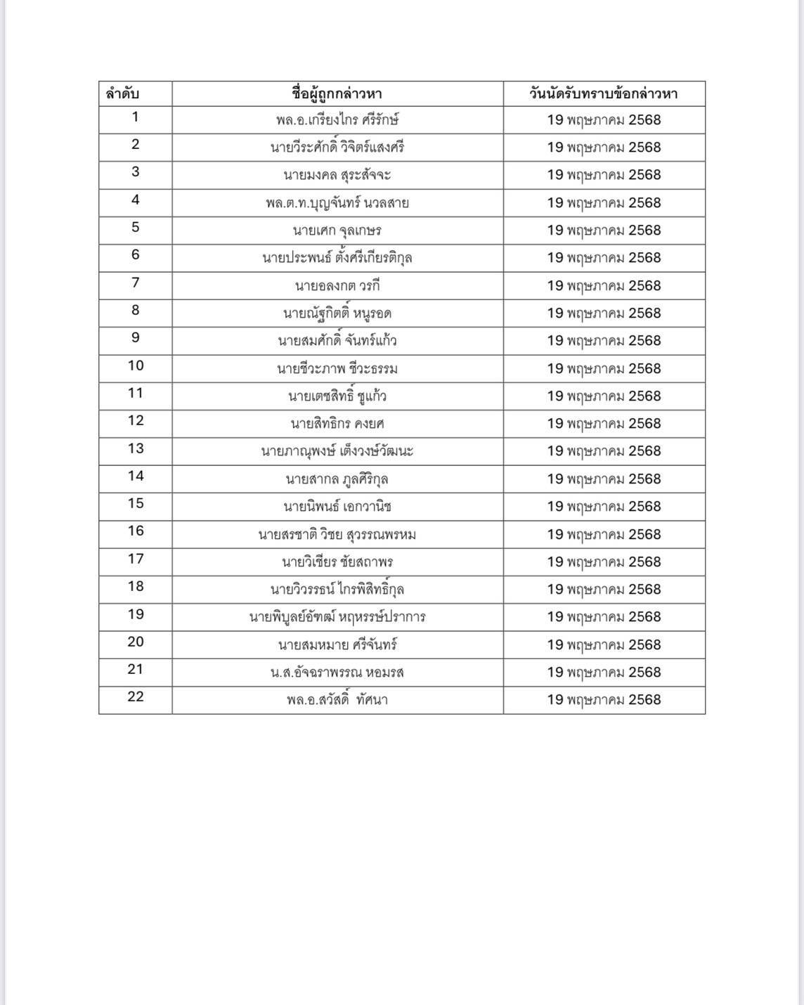 กลุ่ม สว.ที่นัดให้เข้ารับทราบและชี้เแจงข้อกล่าวหาในวันที่ 19 พ.ค.68 มีจำนวน 22 คน ได้แก่