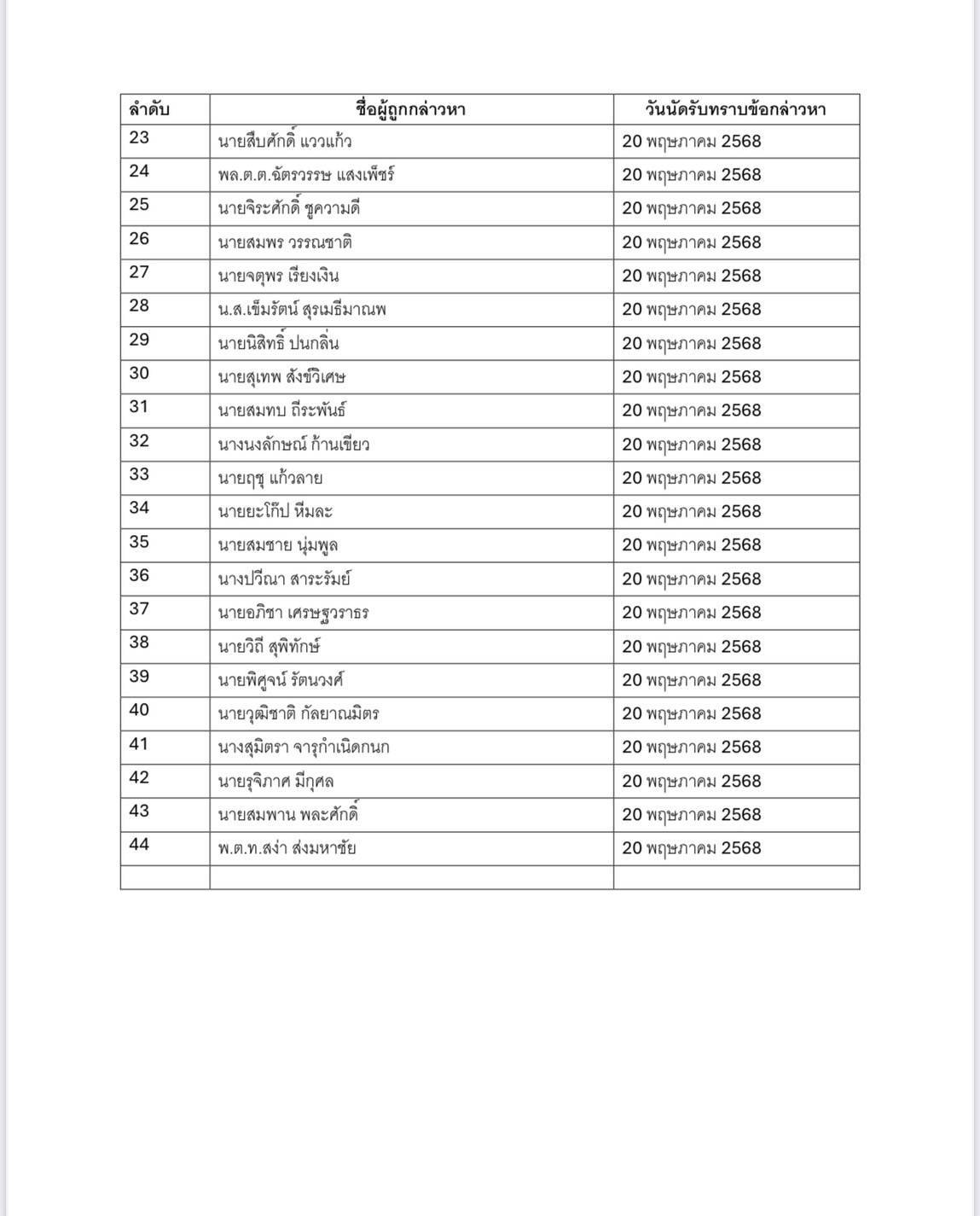กลุ่ม สว.ที่นัดให้เข้ารับทราบและชี้แจงข้อกล่าวหาในวันที่ 20 พ.ค.68 จำนวน 22 คน ได้แก่