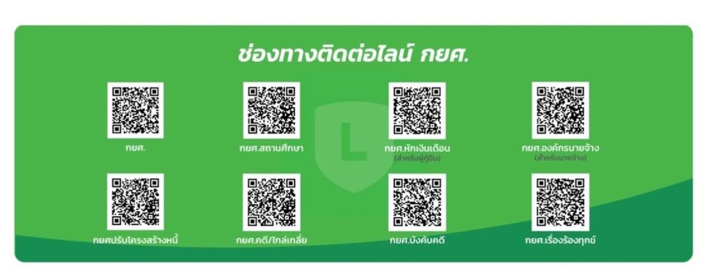 สำหรับผู้ที่ต้องการสอบถามข้อมูลเพิ่มเติม สามารถติดต่อได้ที่ อีเมล์ : self-debt@studentloan.or.th, LINE กยศ.หักเงินเดือน https://lin.ee/oecrHbM, LINE กยศ.องค์กรนายจ้าง https://lin.ee/HwgODCW