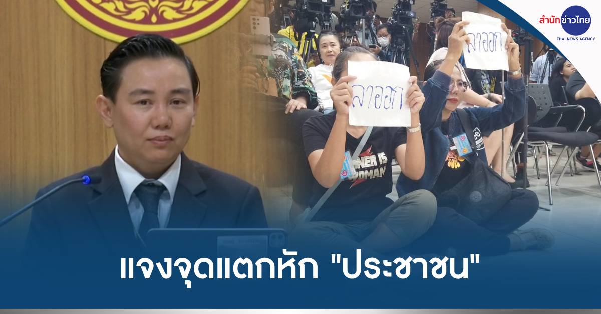 ผู้สื่อข่าวรายงานว่าเมื่อพูดมาถึงตอนนี้ ชาวบ้านที่มาฟังการแถลงข่าวได้ตะโกนถามว่า เพราะเงินใช่หรือไม่ แล้วทำไมไม่ลาออกไป ให้ประชาชนตัดสินใจ ถามประชาชนแล้วหรือยัง