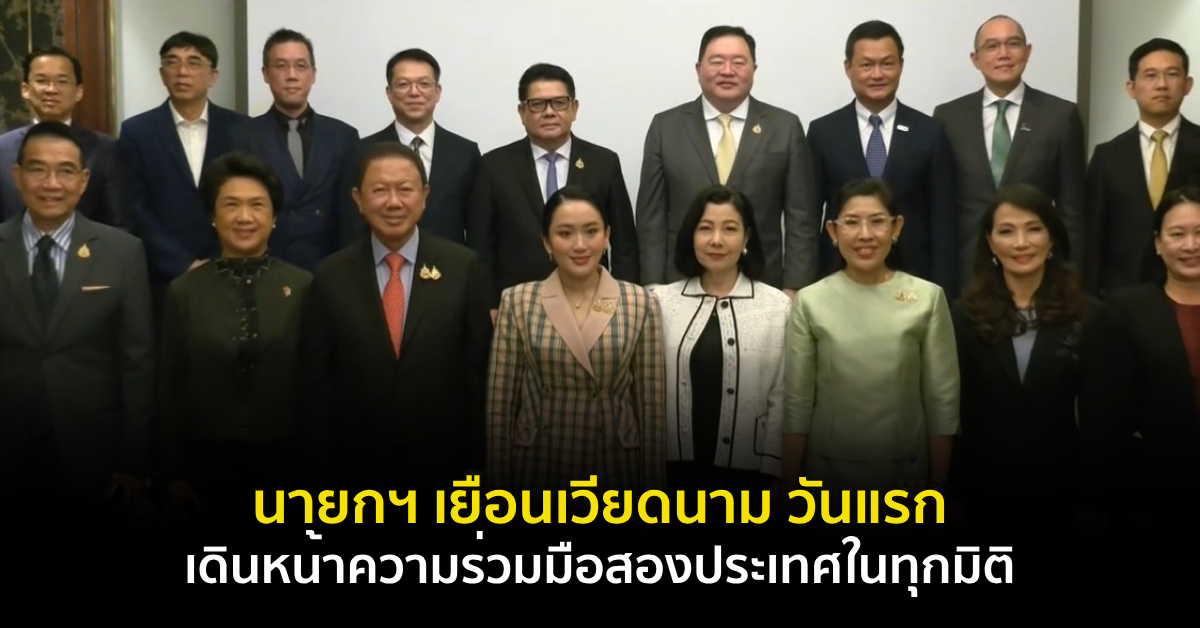 เวียดนาม 15 พ.ค. – นายกรัฐมนตรี เดินทางเยือนสาธารณรัฐสังคมนิยมเวียดนามอย่างเป็นทางการ พร้อมเดินหน้าความร่วมมือสองประเทศในทุกมิติ โดยเฉพาะการผลักดันไทยเป็นศูนย์กลางการบินและเทคโนโลยี.-สำนักข่าวไทย