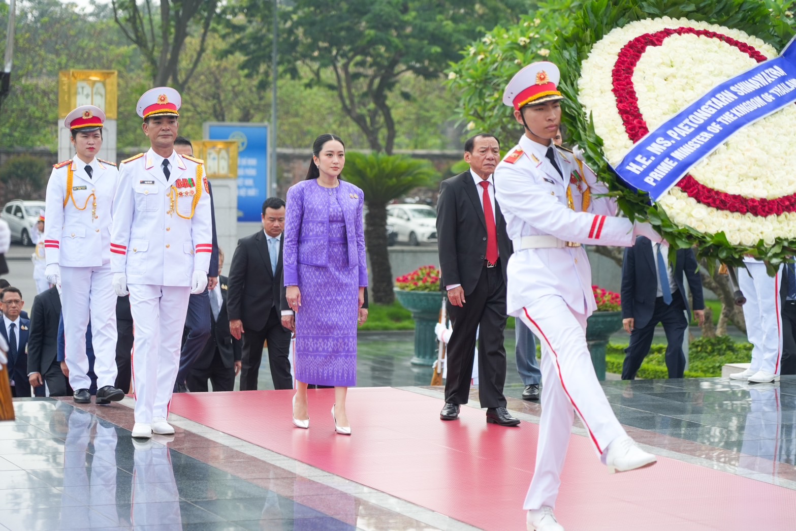 นางสาวแพทองธาร ชินวัตร นายกรัฐมนตรี เข้าร่วมพิธีวางพวงมาลา ณ อนุสาวรีย์วีรชนและผู้เสียสละบั๊กเซิน ซึ่งเป็นอนุสรณ์สถานสำคัญที่สร้างขึ้นเพื่อรำลึกถึงวีรกรรมของนักปฏิวัติผู้เสียสละชีวิต เมื่อปี ค.ศ. 1940 ซึ่งนับเป็นจุดเริ่มต้นสำคัญของขบวนการต่อสู้ของเวียดนามภายใต้การนำของอดีตประธานาธิบดีโฮจิมินห์ โดยตั้งอยู่บนถนนบั๊กเซิน (Bạch Sơn Street) ในพื้นที่ใกล้กับจัตุรัสบาดิ่งห์ โดยออกแบบในสไตล์ศิลปะสังคมนิยม ที่ประกอบด้วยกลุ่มรูปปั้นนักรบปฏิวัติ แสดงถึงความกล้าหาญและความสามัคคีของนักต่อสู้เพื่อเอกราชของเวียดนาม