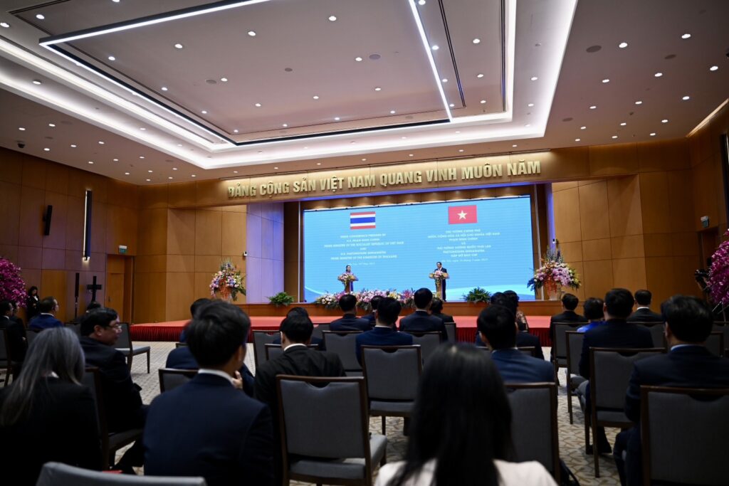 จากนั้น นายกรัฐมนตรีกับนายกรัฐมนตรีเวียดนามได้แถลงข่าวร่วมกัน โดยนางสาวแพทองธาร นายกรัฐมนตรี กล่าวขอบคุณรัฐบาลเวียดนามในการต้อนรับที่อบอุ่น สำหรับการเยือนเวียดนามอย่างเป็นทางการเป็นครั้งแรก และได้ร่วมเป็นประธานการประชุม JCR ซึ่งถือเป็นกลไกเฉพาะระหว่างสองประเทศ โดยในการเยือนครั้งนี้ ไทยและเวียดนามได้ยกระดับความสัมพันธ์เป็น “หุ้นส่วนยุทธศาสตร์รอบด้าน” (Comprehensive Strategic Partnership) ซึ่งเป็นหมุดหมายสำคัญของความสัมพันธ์ระหว่างสองประเทศในช่วงเวลาที่โลกกำลังเผชิญกับความไม่แน่นอน