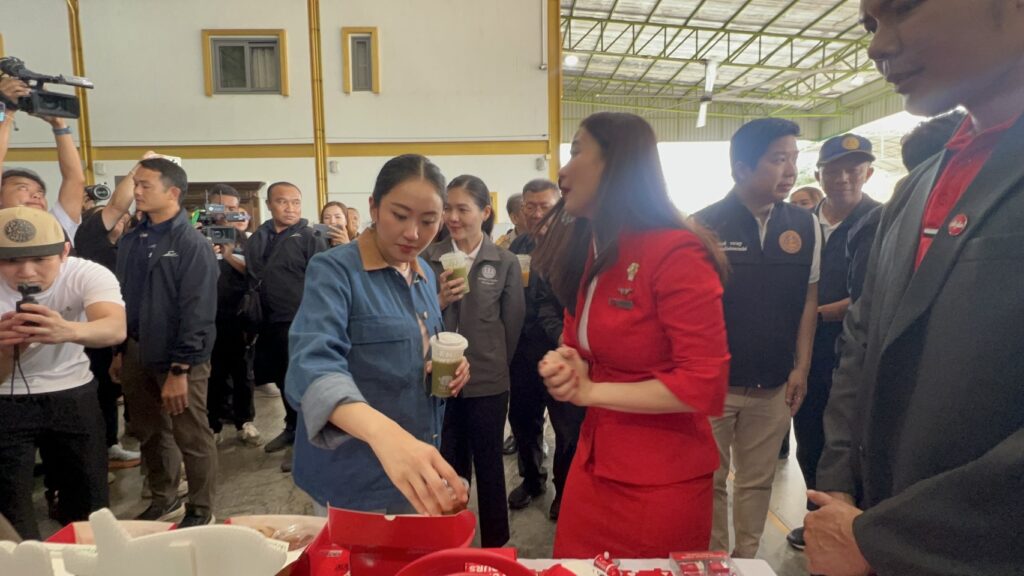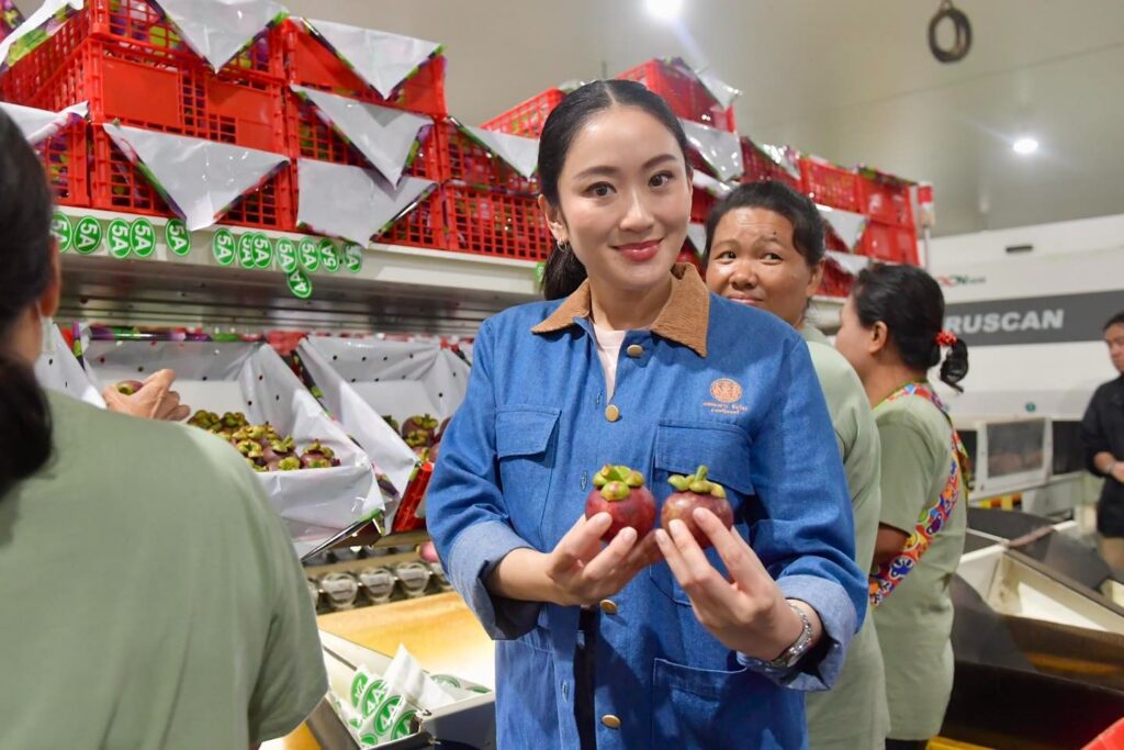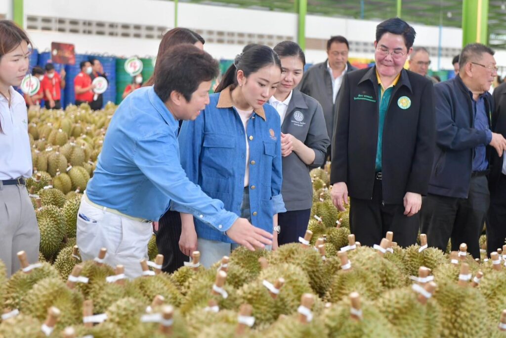 ช่วงบ่ายของการลงพื้นที่จังหวัดจันทบุรี นางสาวแพทองธาร ชินวัตร นายกรัฐมนตรี และคณะ ได้เยี่ยมชมบริษัทเอกชน อ.มะขาม ชมการคัดแยกและบรรจุมังคุด เพื่อส่งออกและขายไปยังต่างประเทศ จากนั้นเยี่ยมชมบริษัท ดรากอน เฟรช ฟรุท จำกัด อ.มะขาม ดูขั้นตอนการตรวจสอบคุณภาพ การแปรรูปเพื่อเพิ่มมูลค่าผลผลิต และการกระจายผลไม้ พร้อมชมบูธกิจกรรมแปรรูปผลไม้ และความร่วมมือเอกชน ในการนำเมนูผลไม้ตามฤดูกาล ที่มีทั้งอาหารคาวอาหารหวาน และเครื่องดื่มสมูทตี้ เสริฟบนเครื่องบินของสายการบินแอร์เอเชีย ซึ่งนายกรัฐมนตรี ชมว่าเยี่ยมมาก