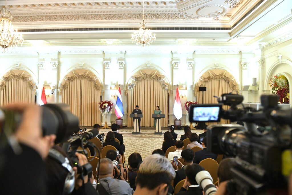 นางสาวแพทองธาร ชินวัตร นายกรัฐมนตรี และ นายปราโบโว ซูบียันโต (H.E. Mr. Prabowo Subianto) ประธานาธิบดีแห่งสาธารณรัฐอินโดนีเซีย แถลงข่าวร่วมในโอกาสที่ ประธานาธิบดีแห่งสาธารณรัฐอินโดนีเซีย เดินทางเยือนประเทศไทยอย่างเป็นทางการในฐานะแขกของรัฐบาล (Official Visit)
