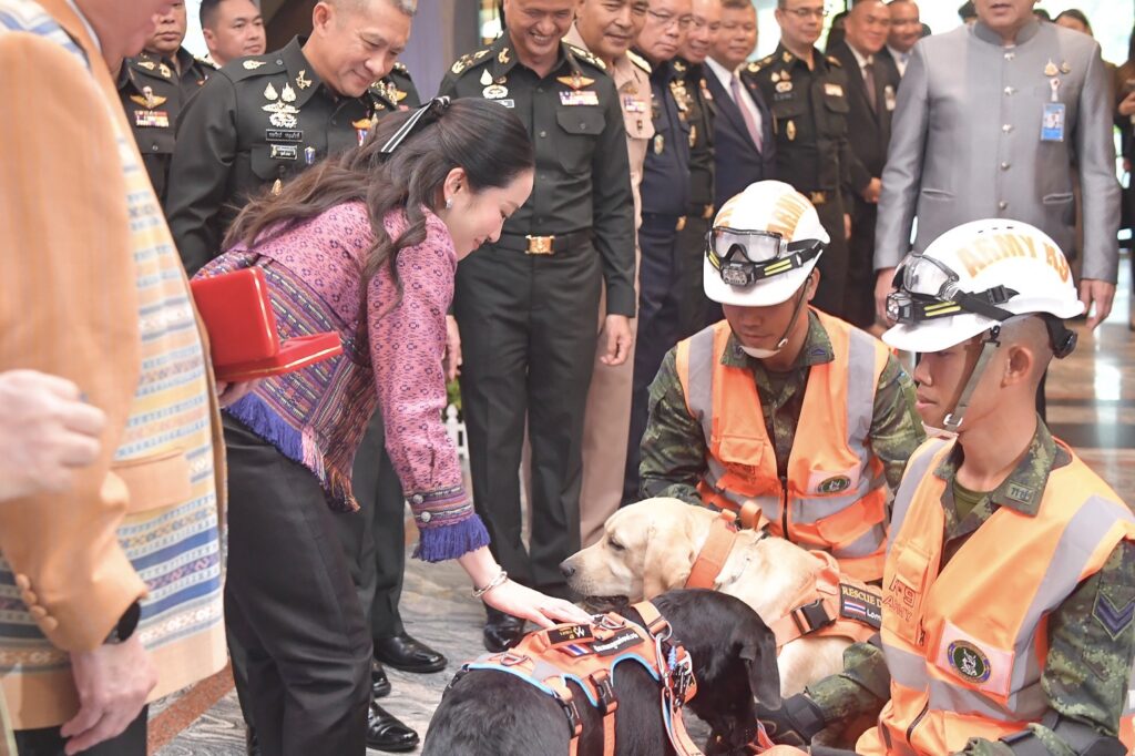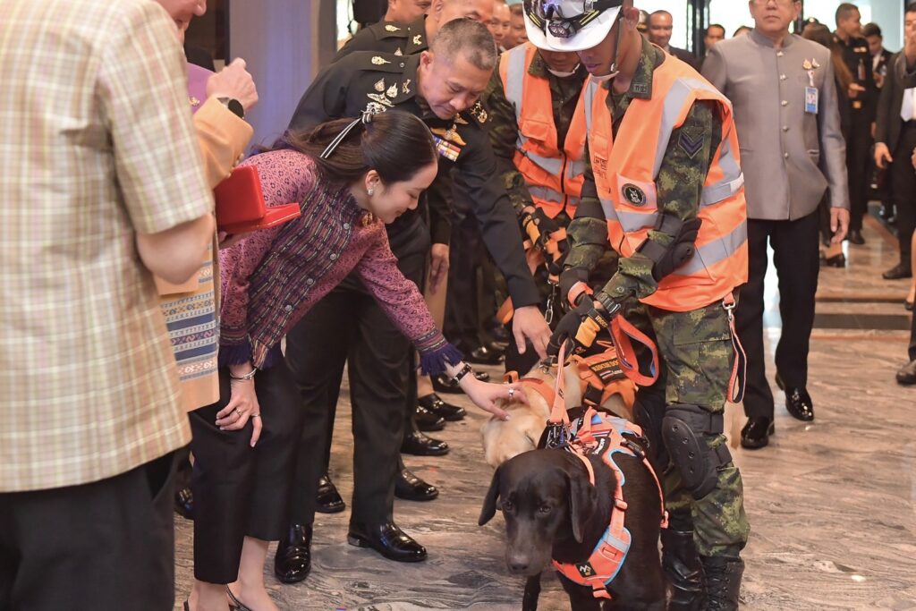 โดยนายกฯ ได้เยี่ยมชมนิทรรศการยุทโธปกรณ์และเทคโนโลยีต่างๆ เช่น เครื่องตรวจสัญญาณชีพ หุ่นยนต์ค้นหาและกู้ภัย พร้อมสอบถามถึงการใช้งานในภารกิจต่างๆ ซึ่งเจ้าหน้าที่ตอบว่าหุ่นยนต์มีการติดอุปกรณ์กล้องเพื่อใช้ในการค้นหาใต้ซากปรักหักพัง นายกฯ กล่าวว่า อยากให้เตรียมอุปกรณ์ให้พร้อมใช้ทำงาน รวมถึงกำลังพลด้วย นอกจากนี้ยังมีชุดสุนัขกู้ภัย K9 ซึ่งเป็นอีกหนึ่งกำลังสำคัญในการค้นหาผู้ประสบภัยที่ติดอยู่ใต้ซากปรักหักพักมาภายในงาน โดยนายกฯสอบถามว่า สุนัขกัดหรือไม่ ซึ่งทหารที่เลี้ยงสุนัข ตอบว่า ไม่กัด นายกฯจึงเอามือลูบหัวสุนัขทั้ง 2 ตัว และนายกฯได้ถ่ายภาพร่วมกันกับคณะผู้บริหาร