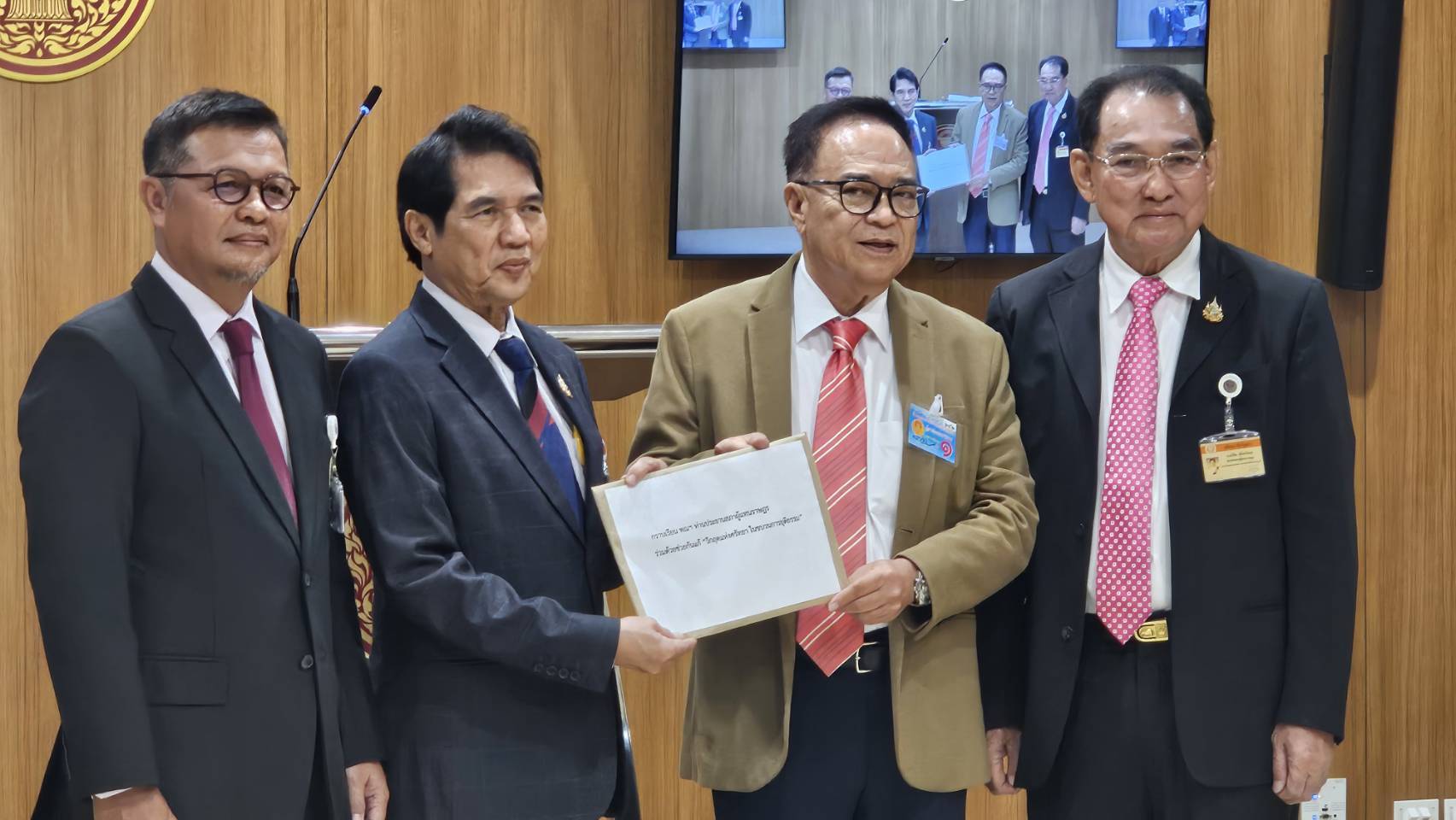 นายคัมภีร์ ดิษฐากรณ์ โฆษกประธานสภาผู้แทนราษฎร รับหนังสือจาก 3 อดีตสส. นายสัญญา สถิรบุตร นายวิชิต ปลั่งศรีสกุล และนายอันวาร์ สาและ ที่เสนอแก้ไขโครงสร้างประเทศ ขอให้นายวันมูหะมัดนอร์ มะทา ประธานรัฐสภา และประธานสภาผู้แทนราษฎร พิจารณา ตั้งคณะกรรมาธิการวิสามัญจากทุกพรรคการเมือง ขึ้นมาพิจารณา หาทางป้องกันและแก้ไขไม่ให้มีกระบวนการใดๆ ที่จะเข้ามาแทรกแซงบิดเบือน กลไกกระบวนการอำนาจหลักของประเทศ คืออำนาจนิติบัญญัติ อำนาจบริหาร และอำนาจตุลาการ ที่ก่อให้เกิด ความรวนเรและสับสน กระทบต่อความ เชื่อถือและความเชื่อมั่น อย่างร้ายแรง เพราะก้าวก่ายในอำนาจซึ่งกันและกัน พร้อมยกตัวอย่างกรณีโฮปเวลล์ และเขากระโดงที่มีคำพิพากษาตัดสินเป็นที่สุดแล้ว แต่กลับ ไปยืมมือองค์กรอื่นเข้ามา เพื่อบิดเบือน ผลคำพิพากษา โดยไม่ต้องปฏิบัติตาม ซึ่งถือเป็นการทำลายความเชื่อมั่นของระบบ ซึ่งคดีถึงที่สุดแล้ว แต่ก็มีการใช้อำนาจทางการเมือง เข้าไปแทรกแซง เพื่อที่จะปฏิเสธอำนาจตุลาการ
