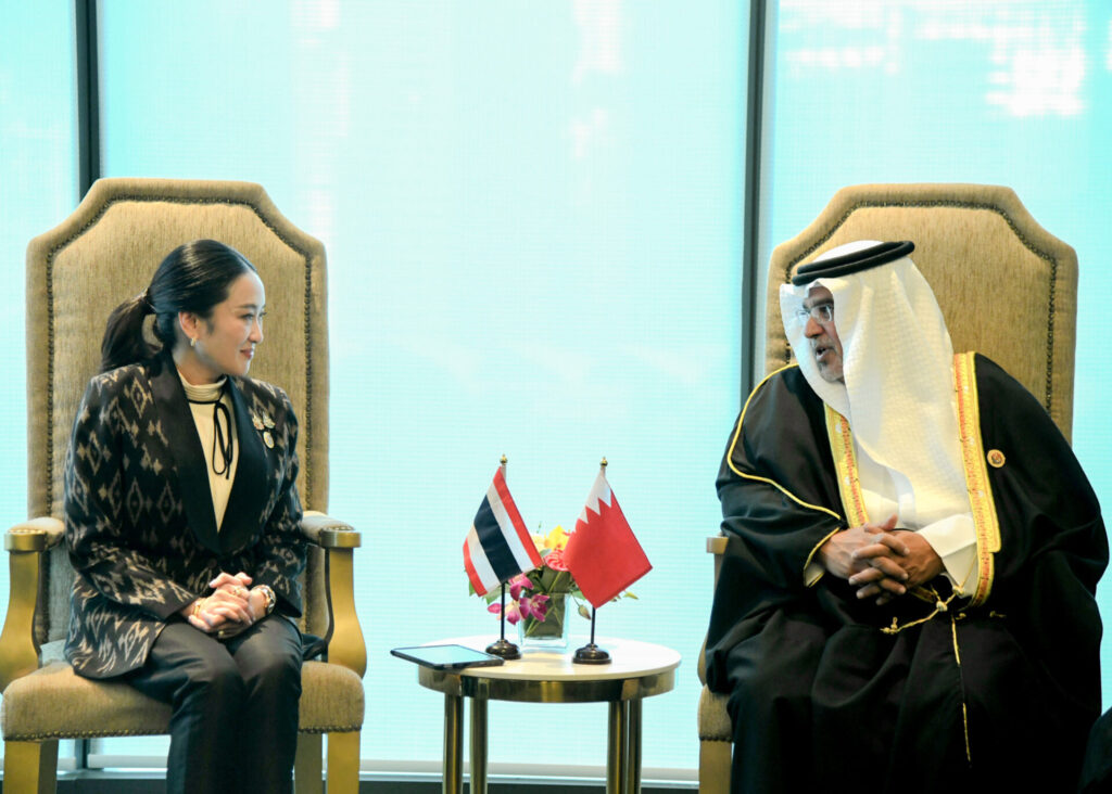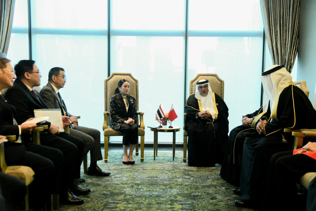 นายกรัฐมนตรี กล่าวแสดงความยินดีที่ได้เข้าเฝ้าฯ มกุฎราชกุมารและนายกรัฐมนตรีแห่งราชอาณาจักรบาห์เรน ทั้งนี้ บาห์เรนถือเป็นพันธมิตรที่ใกล้ชิดและสำคัญในตะวันออกกลาง มกุฎราชกุมารและนายกรัฐมนตรีแห่งราชอาณาจักรบาห์เรน ชื่นชมความสัมพันธ์ ไทย – บาห์เรน โดยทั้งสองฝ่ายยังได้มีการแลกเปลี่ยนความคิดเห็นสถานการณ์ต่างๆ อาทิ ภาษีศุลากรระดับสูงของสหรัฐ เป็นต้น