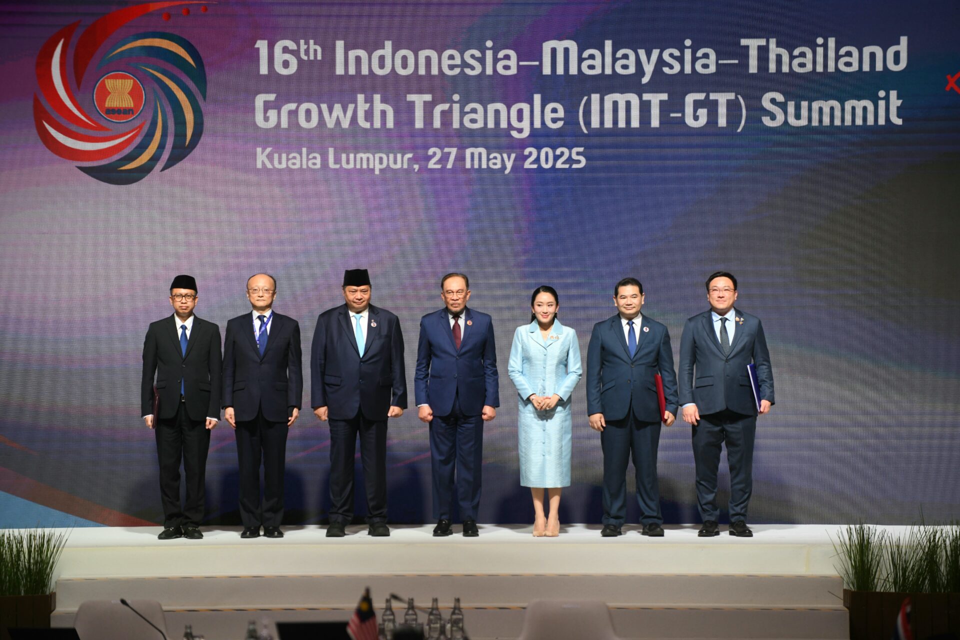 วันนี้ (27 พ.ค. 68) เวลา 17.00 น. ตามเวลาท้องที่กรุงกัวลาลัมเปอร์ ประเทศมาเลเซีย ซึ่งตรงกับเวลา 16.00 น.ตามเวลาในประเทศไทย ณ ห้อง Conference Hall 1 ชั้น 3 ศูนย์ประชุม Kuala Lumpur Convention Center (KLCC) นางสาวแพทองธาร ชินวัตร นายกรัฐมนตรี เข้าร่วมการประชุมแผนงานการพัฒนาเขตเศรษฐกิจสามฝ่าย อินโดนีเซีย – มาเลเซีย – ไทย (Indonesia-Malaysia-Thailand Growth Triangle: IMT-GT) ครั้งที่ 16 ร่วมกับดาโตะ เซอรี อันวาร์ อิบราฮิม (Dato’ Seri Anwar Ibrahim) นายกรัฐมนตรีมาเลเซีย และประธานธนาคารพัฒนาเอเชีย (ADB)
