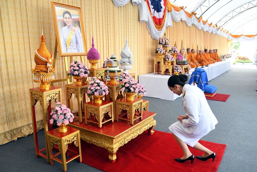 ทั้งนี้ เมื่อนายกรัฐมนตรีเดินทางมาถึงปะรำพิธี พระสงฆ์จำนวน 10 รูป ในพิธีเจริญพระพุทธมนต์ขึ้นนั่งอาสน์สงฆ์ จากนั้น นายกรัฐมนตรีได้จุดธูปเทียนบูชาพระรัตนตรัย และถวายธูปเทียนแพหน้าพระฉายาลักษณ์สมเด็จพระนางเจ้าฯ พระบรมราชินี เจ้าหน้าที่ปฏิบัติพิธีสงฆ์อาราธนาศีล อาราธนาพระปริตร พระสงฆ์ให้ศีล และเจริญพระพุทธมนต์
